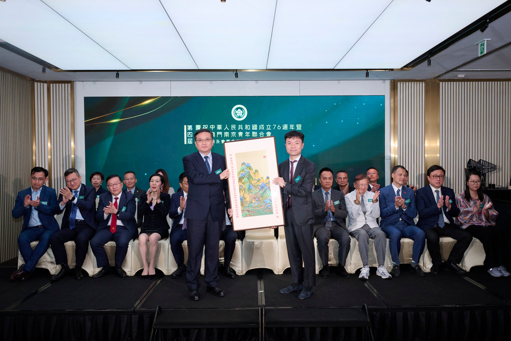 2025年10月20日晚,香港澳门南京青年联合会在香港尼依格罗美丽酒店举行“庆祝中华人民共和国成立76周年暨第四届荣誉架构及执行架构成员就职典礼”。典礼在庄严的国歌声中拉开序幕,来自中央驻港机构、江苏省及南京市有关方面领导与嘉宾,以及宁港澳各界青年代表齐聚一堂,共同见证新一届架构成员履职,弘扬爱国爱港爱澳精神,推动宁港澳青年深度交流与融合发展。
