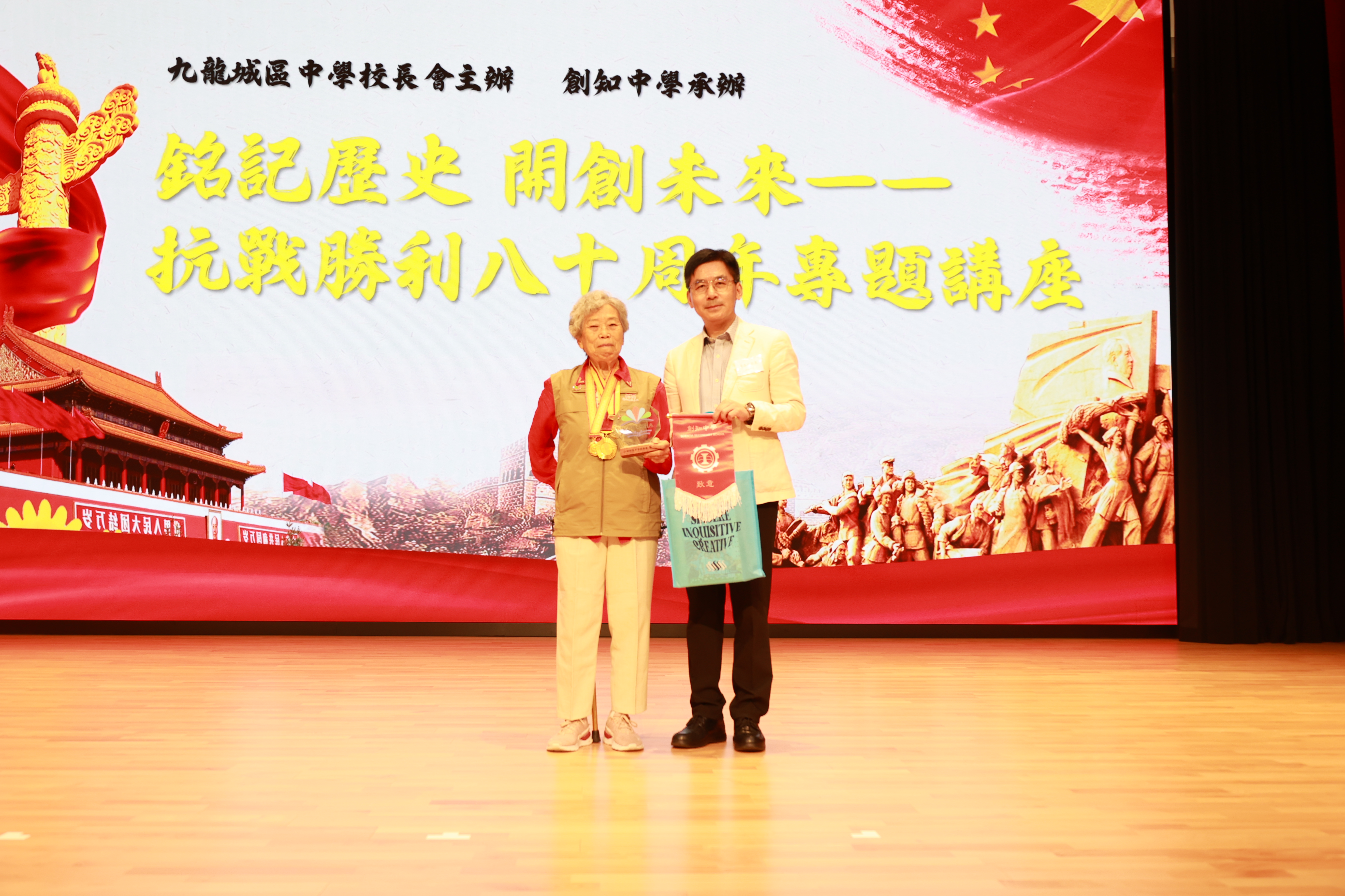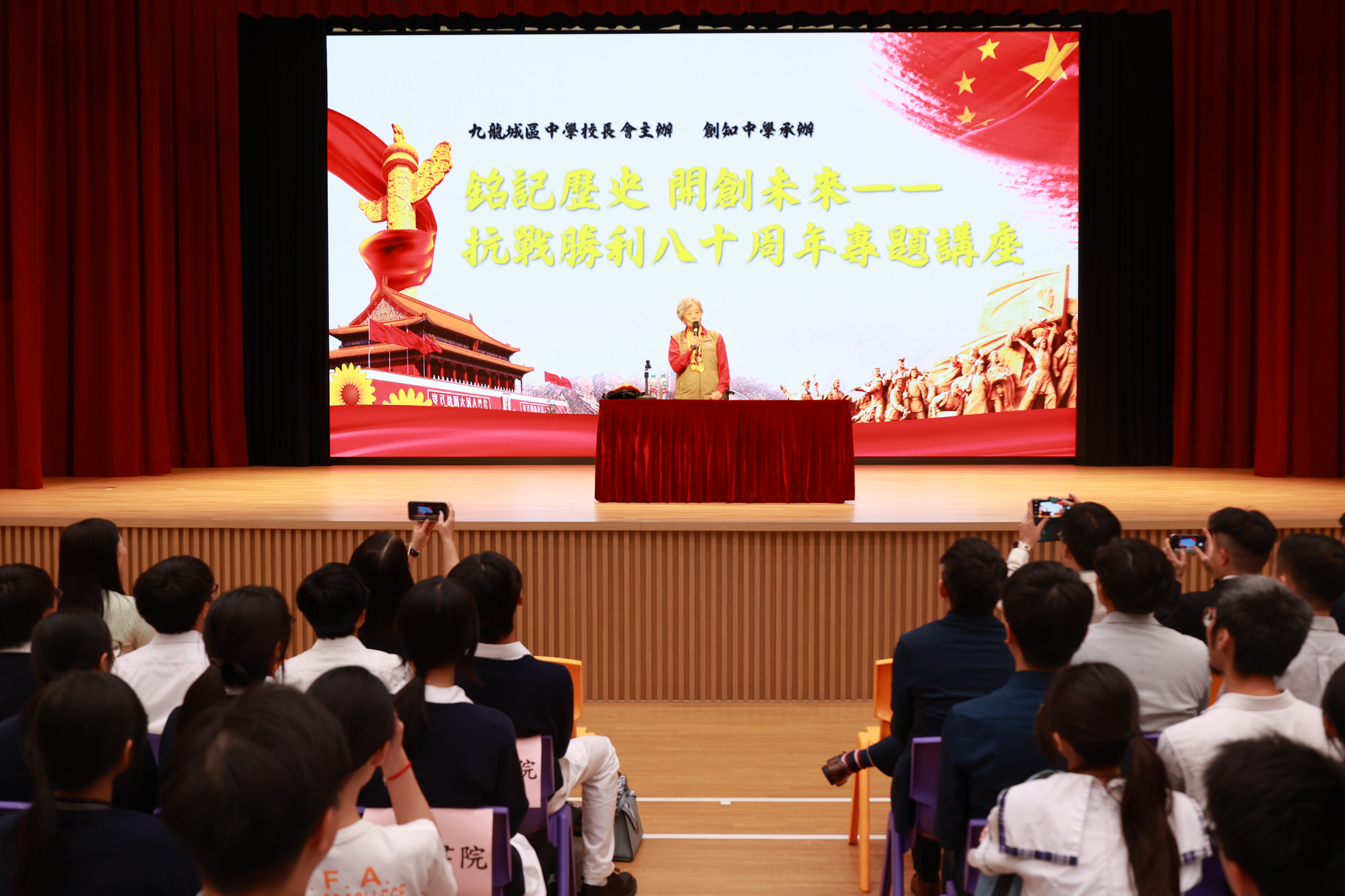 为纪念抗战胜利80周年,让更多年轻人了解这段难以磨灭的历史,昨日九龙城区中学校长会主办、创知中学承办“铭记历史 开创未来——抗战胜利八十周年专题讲座”,并邀请原东江纵队港九独立大队老游击战士联谊会会长林珍,向九龙城区数百名师生分享宝贵经历。林珍强调,抗战的胜利不仅仅是属于士兵,而是属于广大人民,希望在座莘莘学子能够不忘初心、铭记历史、勇敢担当、创造未来。
