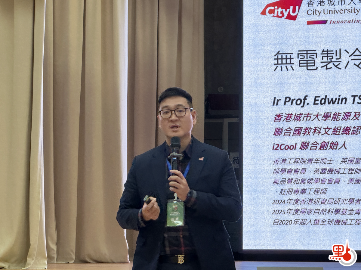 活动还特别邀请了香港城市大学能源及环境学院副院长(国际化及拓展)、联合国教科文组织认可先导计划(FIRST)项目主任暨i2Cool联合创始人曹之胤作为主讲,分享香港原创“无电制冷技术”的科研成果与社会应用。曹之胤指出,香港作为亚热带气候地区,夏季炎热潮湿,5万多栋高楼大厦的用电量占全港90%以上,其中冷气用电占比近50%,因此,解决制冷与环保的矛盾,已成为城市发展的重要课题。