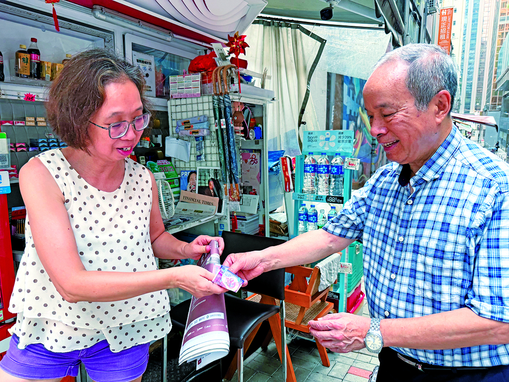 由爸爸手上继承衣钵35年的萍姐,除了感恩由爸爸创立的“泉记”至今尚存外,另一大收获莫过于认识现任丈夫。“佢喺隔壁大厦返工,系朋友介绍认识。”谈到丈夫,萍姐面露丝丝笑容,并说丈夫的工作比较轻松自由,每日都会抽时间帮她“睇一阵档”,让其抖抖气。面对报纸档生意前景黯淡,现年60岁的萍姐说,未来一切随缘,只要她和丈夫任何一个身体状况差,就会把报贩牌交回政府,不作他想。目前,帮衬“泉记”的主要是买饮品的年轻熟客和游客,买报纸或杂志的熟客所剩无几。