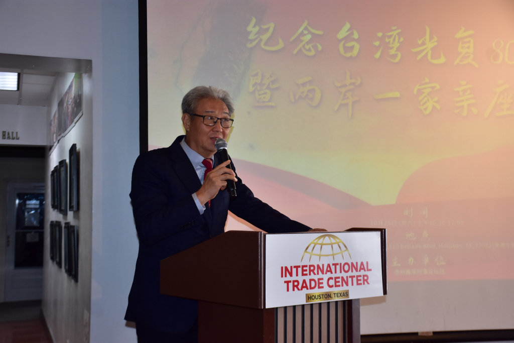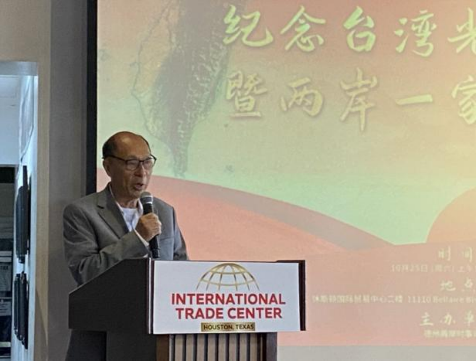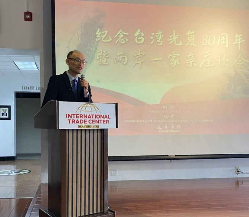 2025年10月25日,作为国际软法促进总会主席、两岸和平发展联合总会永远名誉主席、香港中华总商会会董,受德州两岸时事论坛社顾问邓润京邀请,专程从台北飞赴美国参与及协办德州两岸时事论坛社联合全美华人协会、福建同乡会、中国国民党休士顿分部等,在美国休斯顿市国际贸易中心(International Trade Center)举办的座谈会,隆重纪念台湾光复八十周年,并弘扬"两岸一家亲"的理念。此活动是继2025年9月16日“国际软法促进总会”于香港召开“软法链~惠全球~幸福论—《国际软法座谈会》”之后,又一跨地区协办的活动,致力于团结海内外华人华侨在充满变数的世界中,借助发挥现代科技的力量,促两岸关系融合发展,进一步营造互相关爱的社会,提升人类的幸福感,为祖国统一大业贡献力量。