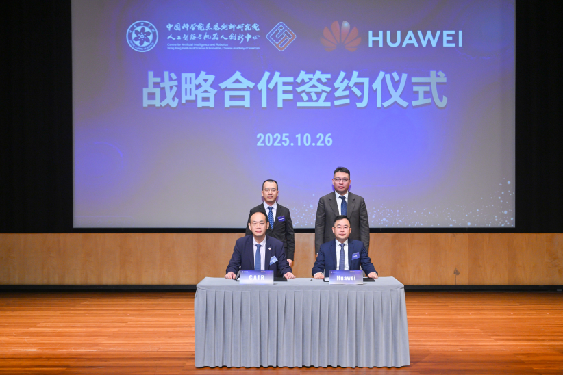 是次合作备忘录在中国科学院香港创新研究院执行院长郝银星博士与华为医疗卫生军团(西)*总裁张伟力的见证下,由中国科学院香港创新研究院人工智能与机器人创新中心主任、研究员刘宏斌教授及华为港澳 ICT Marketing 与解决方案销售部总经理毕进军代表签署。