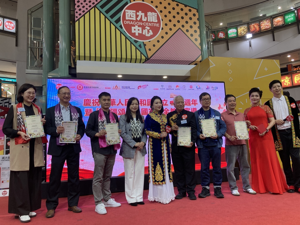 2025年10月27日,由香港民政事务总署资助指导、香港新疆同乡总会主办的“庆祝中华人民共和国成立76周年暨‘边疆颂歌’国家安全教育宣导——香港新疆文化交流周”活动,在西九龙中心一楼大堂盛大开幕。活动以“庆国庆边疆颂融文化港疆情”为核心主旨,一连六日举行,涵盖新疆风情书画展、民族歌舞精粹汇演、特色物产品鉴、传统服装沈浸式体验,内容丰富多元、形式生动立体。开幕当日吸引了各界嘉宾与市民群众踊跃参与,现场洋溢著浓厚的喜庆气息。