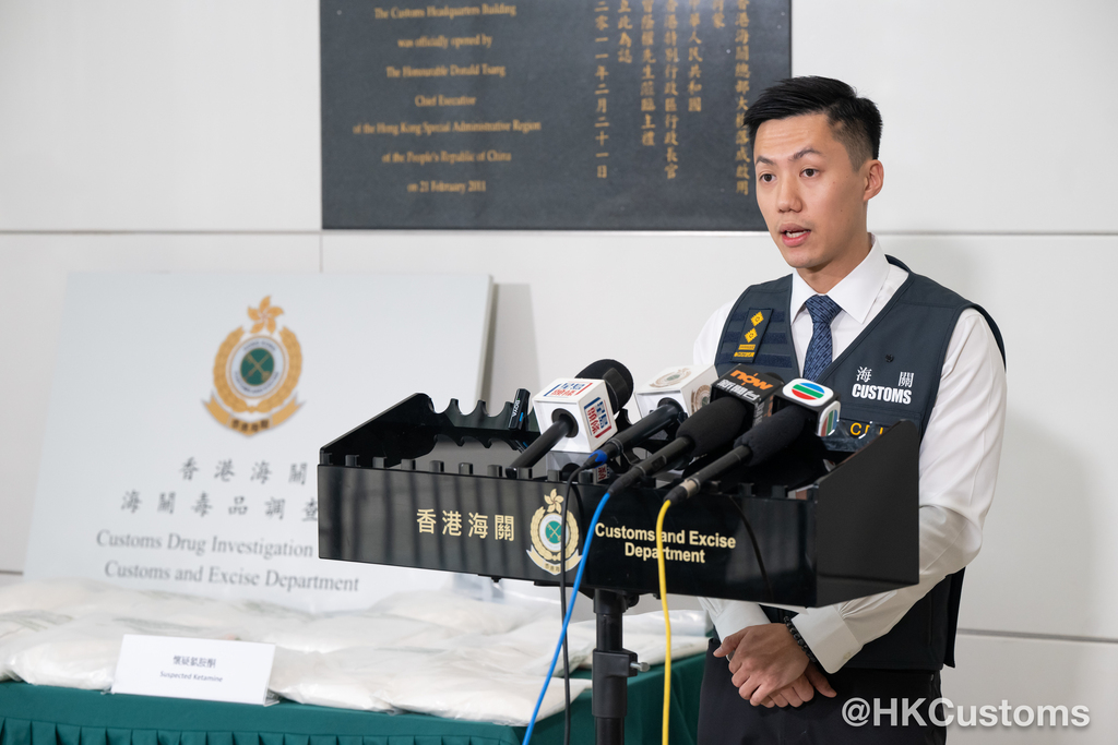 香港海关与内地海关缉私部门进行联合执法行动,根据情报分析,香港海关于十月二十七日搜查一个位于西环的迷你储存仓,并于一件包裹发现四个胶桶内藏约十公斤怀疑氯胺酮。