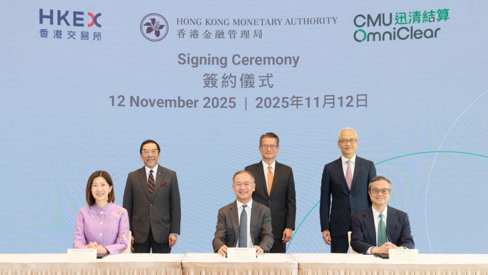 香港金管局旗下迅清结算控股引入港交所为策略性股东,金管局总裁余伟文今日(12日)在签约仪式时表示,未来将与港交所深入探讨,研究是否能够扩大中央结算系统(CMU)托管的证券,在港交所旗下不同清算所作为抵押品的用途,以及如何增加衍生品种类,从而进一步完善香港资本市场的风险管理工具。