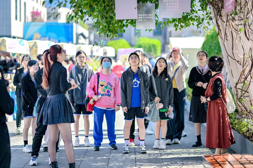 11月15日,十多位来自该校的师生到访深圳深业上城,参观“字游香港漫步城市”主题展览暨书展。在导赏员的带领下,听讲并欣赏展区内多块特色展板,以及多个瞩目的广告招牌与霓虹灯。
