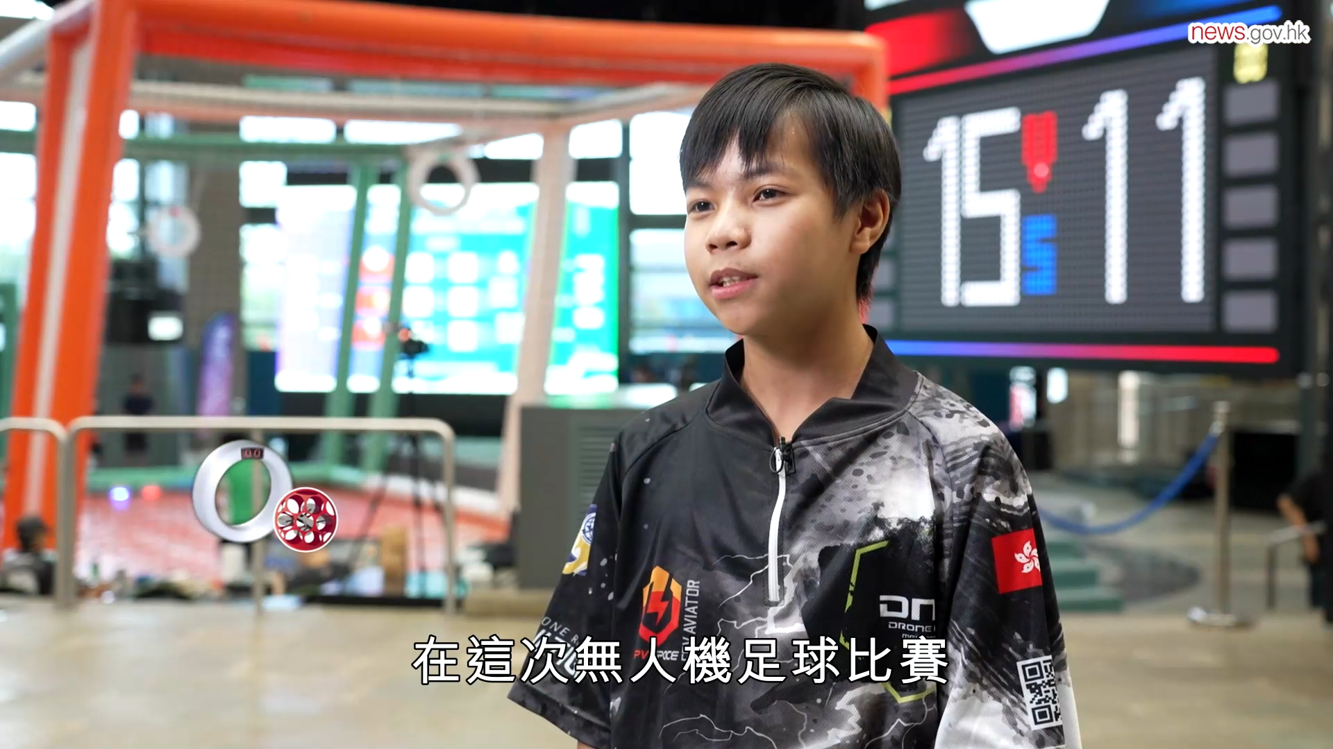 唐逸峰现就读中二,年纪轻轻,已有丰富的无人机足球经验。这天,他伙拍四名队友来到数码港,参加由中国香港无人机总会举办的五对五无人机足球比赛。