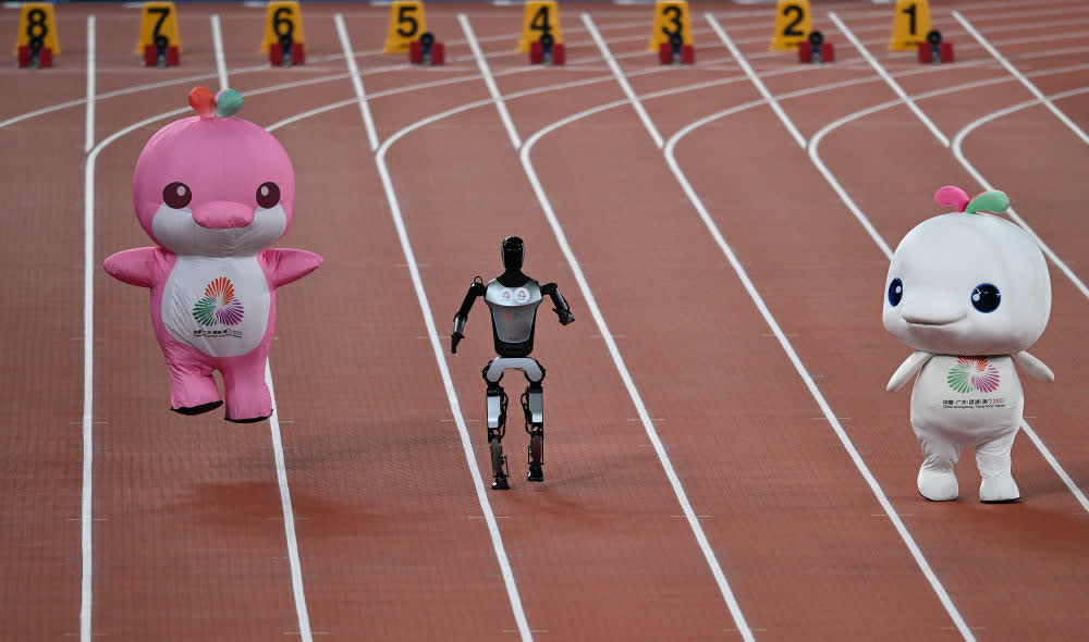 这场“对决”背后,是近年来中国机器人技术、AI终端应用等前沿科技的迅速发展和广泛应用。记者了解到,Walker是优必选科技研发的大型仿人服务机器人。该系列机器人不仅首登全运会开幕式,奏响青铜句鑃,还在各场馆中承担导览互动工作,为赛事运转贡献力量。