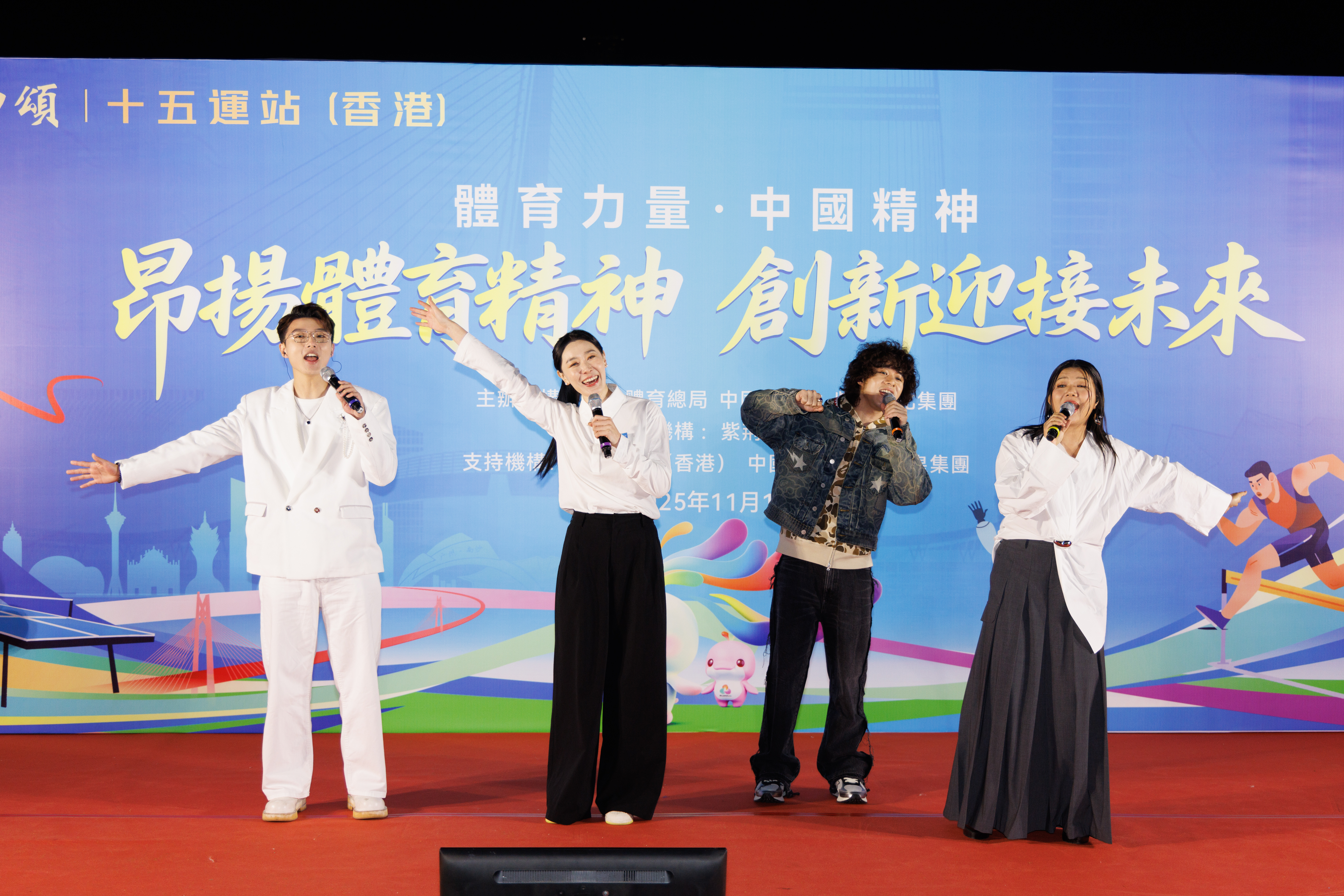 “使命在肩、奋斗有我!号角已吹响,吾辈当自强!”香港福建中学及福建中学附属学校同学们洋溢著青春活力的朗诵声,激荡在香江之畔,回响在维港夜空。11月18日,“中华体育精神颂十五运站”香港站系列活动成功举办、精彩纷呈,大型无人机光影表演点亮香港璀璨星空,生动呈现体育力量与湾区活力。