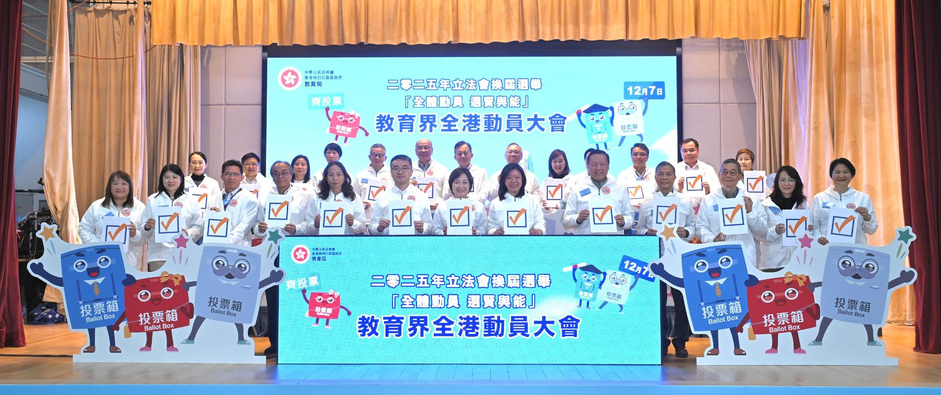 教育局今日(11月19日)举行“全体动员选贤与能”教育界全港动员大会,动员整个教育界全力支持2025年立法会换届选举,合力推广选举信息,推动教育界履行公民责任,踊跃投票。