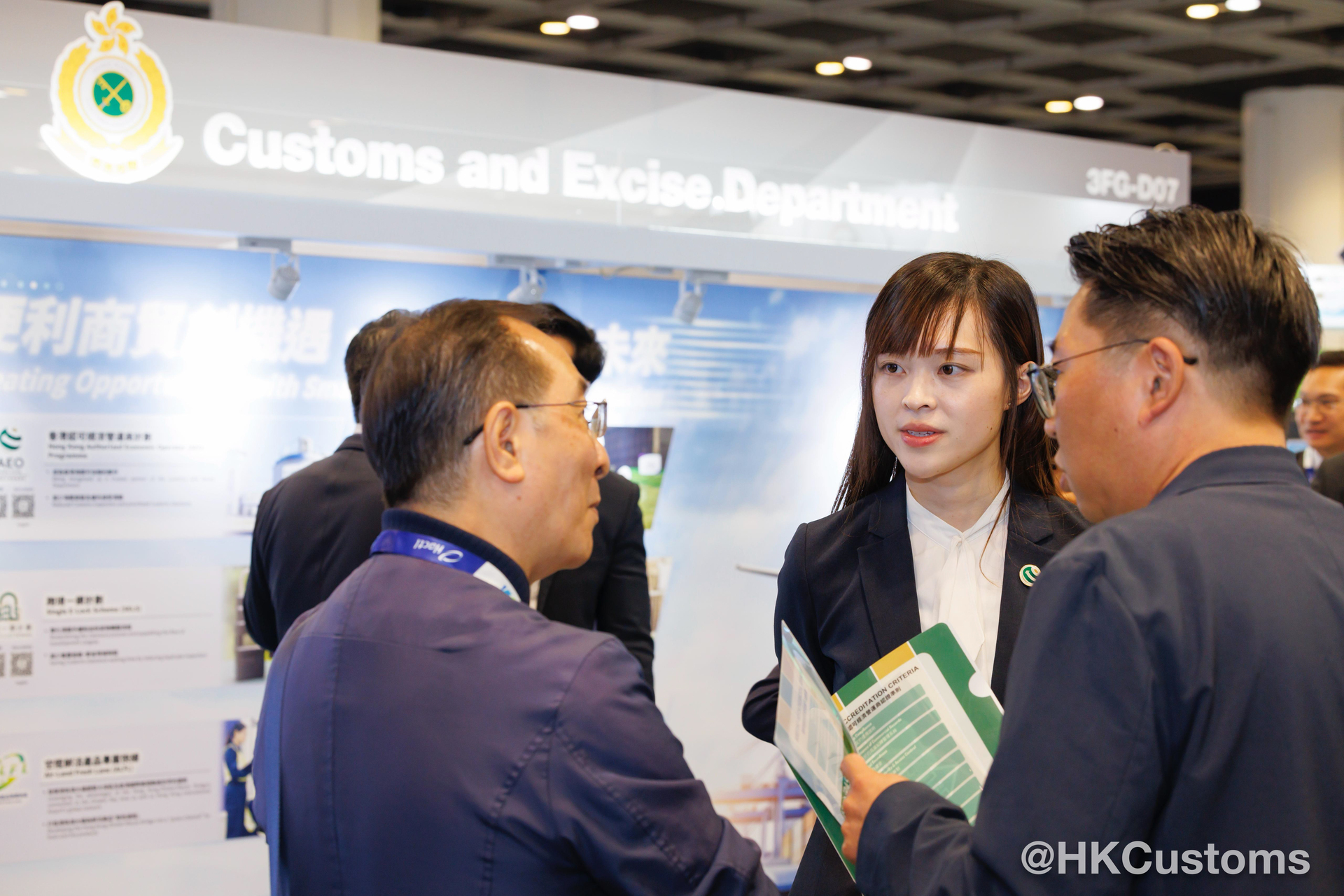 此外,海关助理关长(税务及策略支援)吴镇华亦率领一众海关人员于是次活动中摆设展览,向在场人士重点介绍多项海关便利商贸计划,包括:「香港认可经济营运商计划」、「自由贸易协定中转货物便利计划」、「跨境一锁计划」、「跨境快件清关便利安排」、「空陆鲜活产品专属快线」、「贸易单一窗口」,以及「内地与香港货物『一单两报』」,协助物流业界节省成本及提升竞争力。