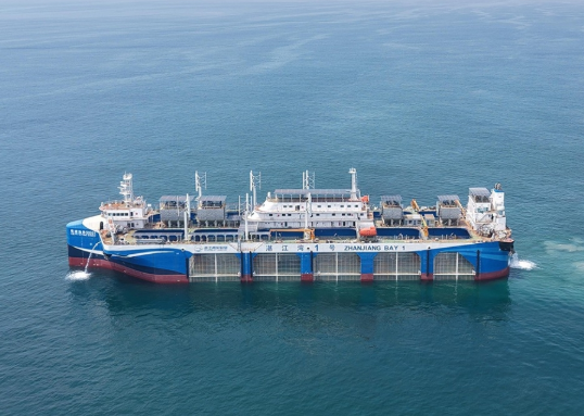 “湛江湾1号”总长154米,总宽44米,养殖水体达8万立方米,船内设有12个独立的养殖区域,可满足多种鱼类同时养殖,年产能可达2000至5000吨,是名副其实的养殖重器。