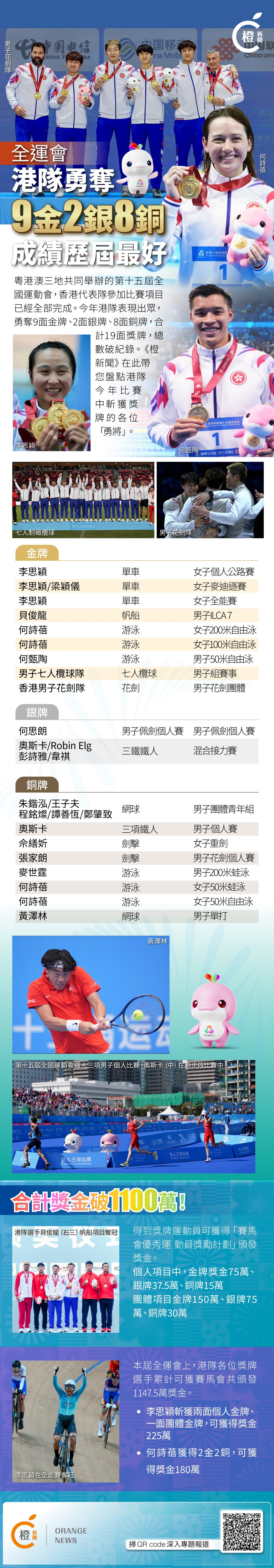 目前,本届全运会上,港队各位奖牌选手可获累计1147.5万奖金。