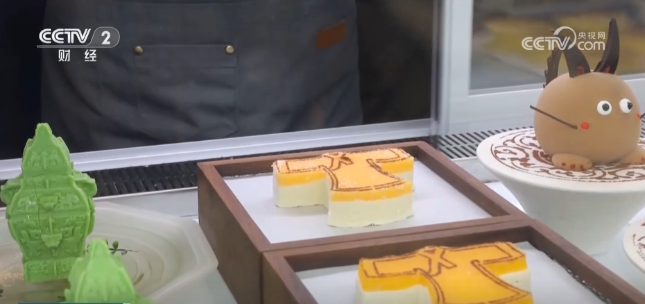 在湖南省博物馆,将文物纹样、器型等,授权给文化、餐饮机构,让文物元素、传统美食、非遗体验相互融合,推出广受好评的甜品。