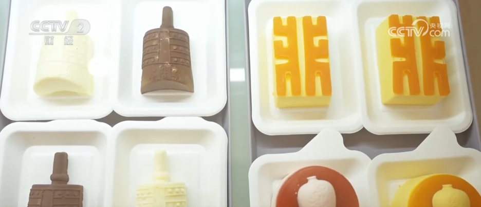 湖南省博物馆某甜品店负责人介绍,实际上,这也是让更多游客在逛完博物馆之后,对文物更有感觉。他们能够捧在手里、吃进嘴里。他们挑了受大众喜欢和有趣一点的文物,比如说皿方罍、人面纹方鼎。
