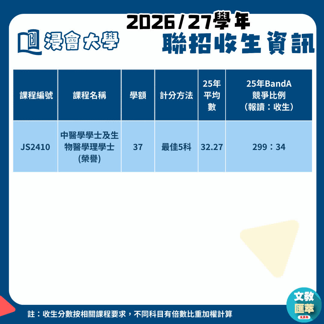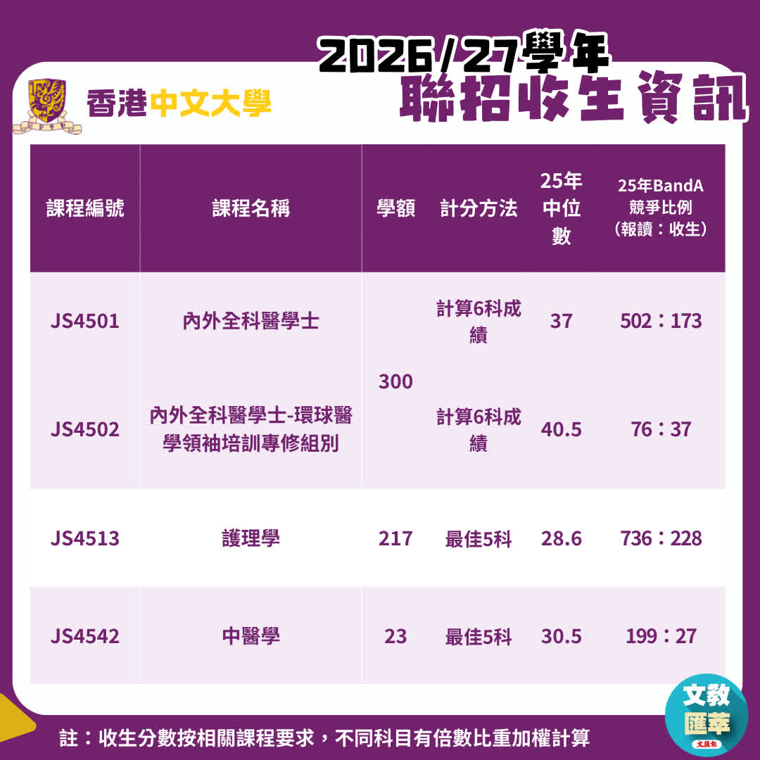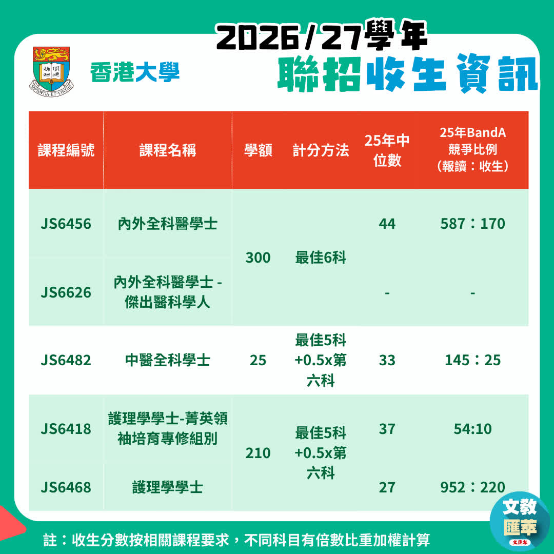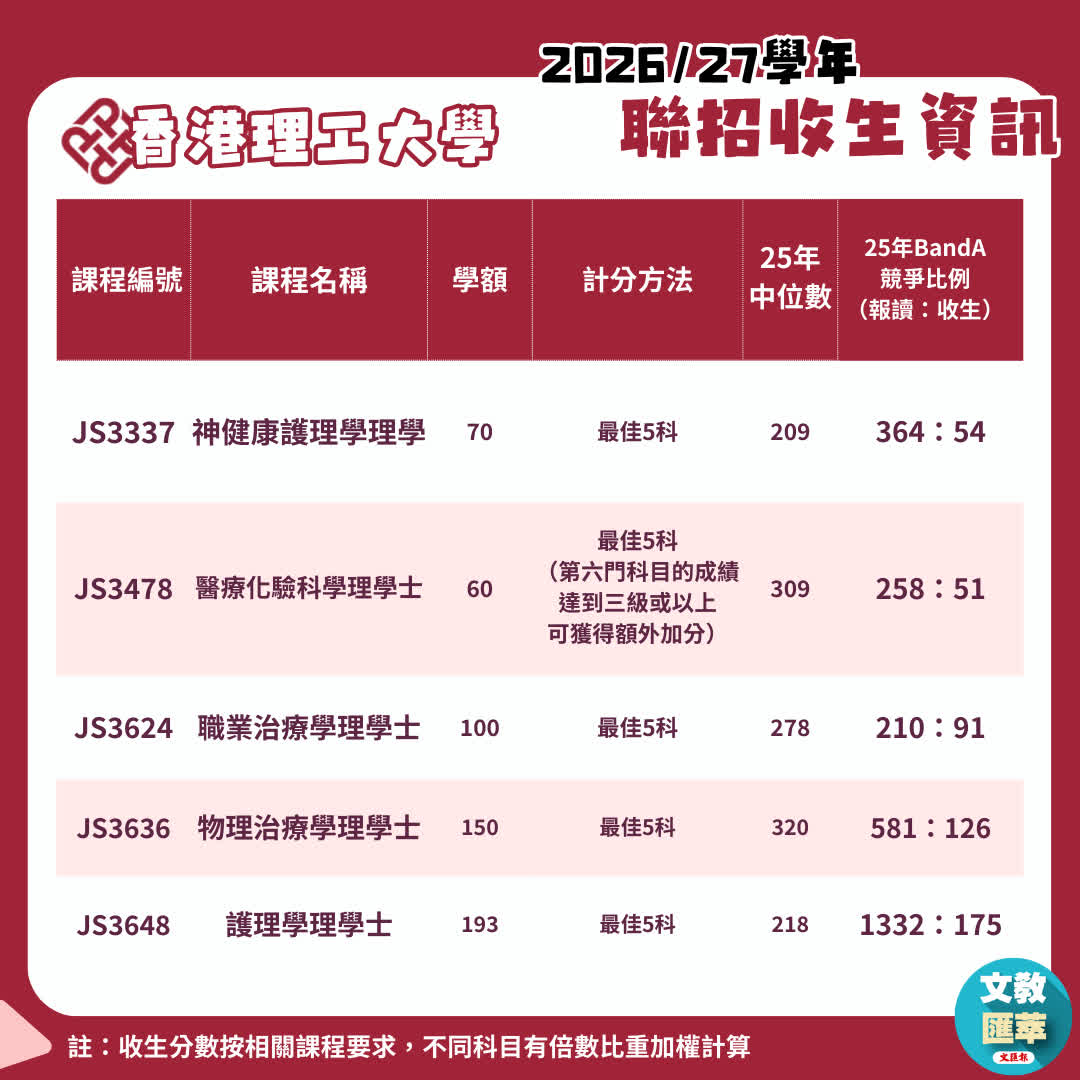 2026年入学的大学联招(JUPAS)首轮申请将于12月3日下午5时截止。记者整理多所资助大学的各项医学治疗与护理课程的资料,涵盖收生名额、往届收生竞争与分数等重要资讯,供正在规划前路的中六文凭试学生,以及感兴趣青少年参考,帮助他们认准自身目标与相关升学要求,让关爱的心与专业知识和培训结合,他日成为支撑社会的重要栋梁。
