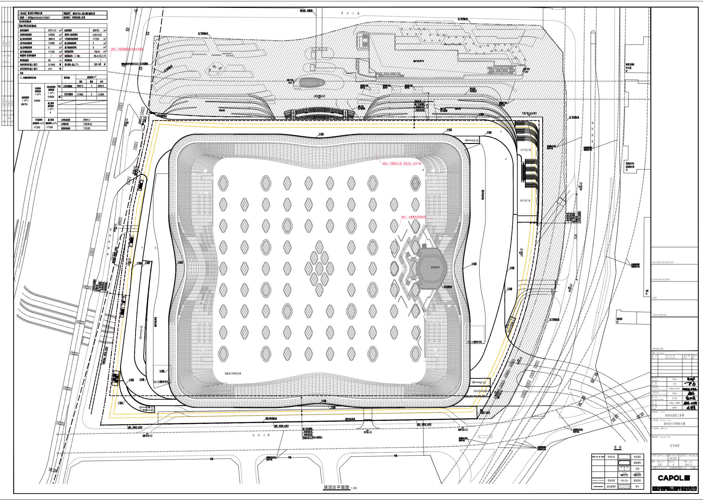 (一)总平面图修改:1、于屋顶东侧增加屋顶停机坪功能,并相应增加出屋面电梯及停机坪的上下曲面楼梯,临近停机坪区域增加景观花池;2、更新第五立面,取消中间菱形范围的太阳能光伏板,优化调整天窗样式;3、更新调整指标表中绿地面积及绿化覆盖率指标,取消绿化覆盖率要求。
