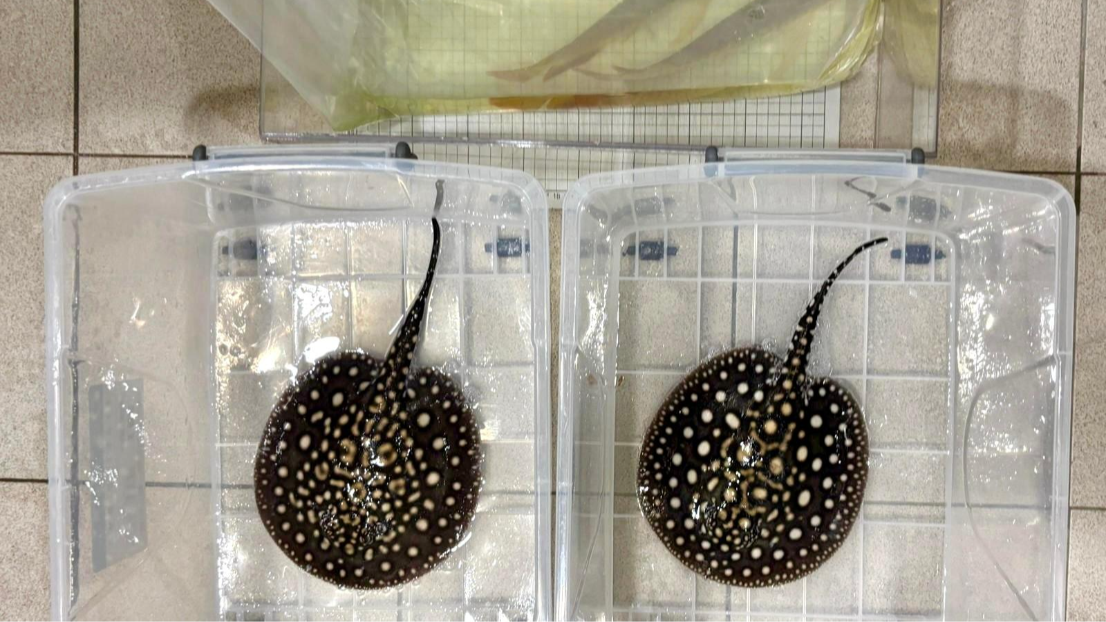 香港海关12月26日在落马洲支线管制站检获共四条怀疑受管制属濒危物种的活体龙吐珠及活体江魟,估计市值约五万二千元。