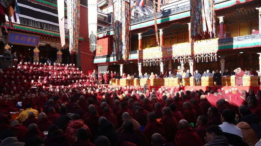 2025年12月9日,第十一世班禅额尔德尼·确吉杰布坐床30周年纪念大会在扎什伦布寺举行,来自西藏、四川、云南、甘肃、青海的藏传佛教界代表在日喀则市扎什伦布寺多加大院共同见证这一时刻。班禅在纪念大会上说:“班禅转世作为班禅世系延续与发展的根本大事,事关藏传佛教健康传承,关系民族团结与社会稳定。回顾三十年前的坐床认定,这一完整、严谨、神圣的过程,充分彰显了中国共产党全面贯彻落实宗教信仰自由政策的坚定决心,有力维护了中央政府对藏传佛教活佛转世事务的历史权威与依法管理,深刻体现了党中央对藏传佛教事业健康发展和广大藏族同胞福祉的深切关怀与高度重视。实践证明,‘金瓶掣签’制度深契佛理,符合国法,顺应民心,是保障藏传佛教健康传承的‘定海神针’,我们必须倍加珍惜,坚决拥护,世代传承。”