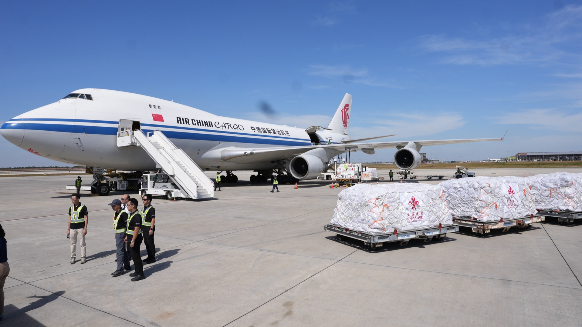 中国政府向柬埔寨提供的首批紧急人道主义援助物资28日运抵金边德崇国际机场。中国驻柬大使汪文斌和柬外交部国务秘书昂拉查纳等出席交接仪式。