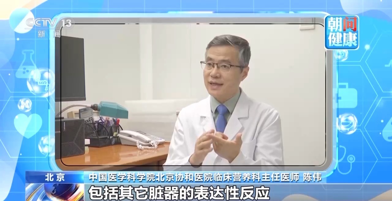 中国医学科学院北京协和医院临床营养科主任医师陈伟:包括胃肠道的反应、其他脏器的表达性反应,而产生不良的影响,比如月经周期不来、头发掉光、便秘出现,这些情况都是对身体的损伤。