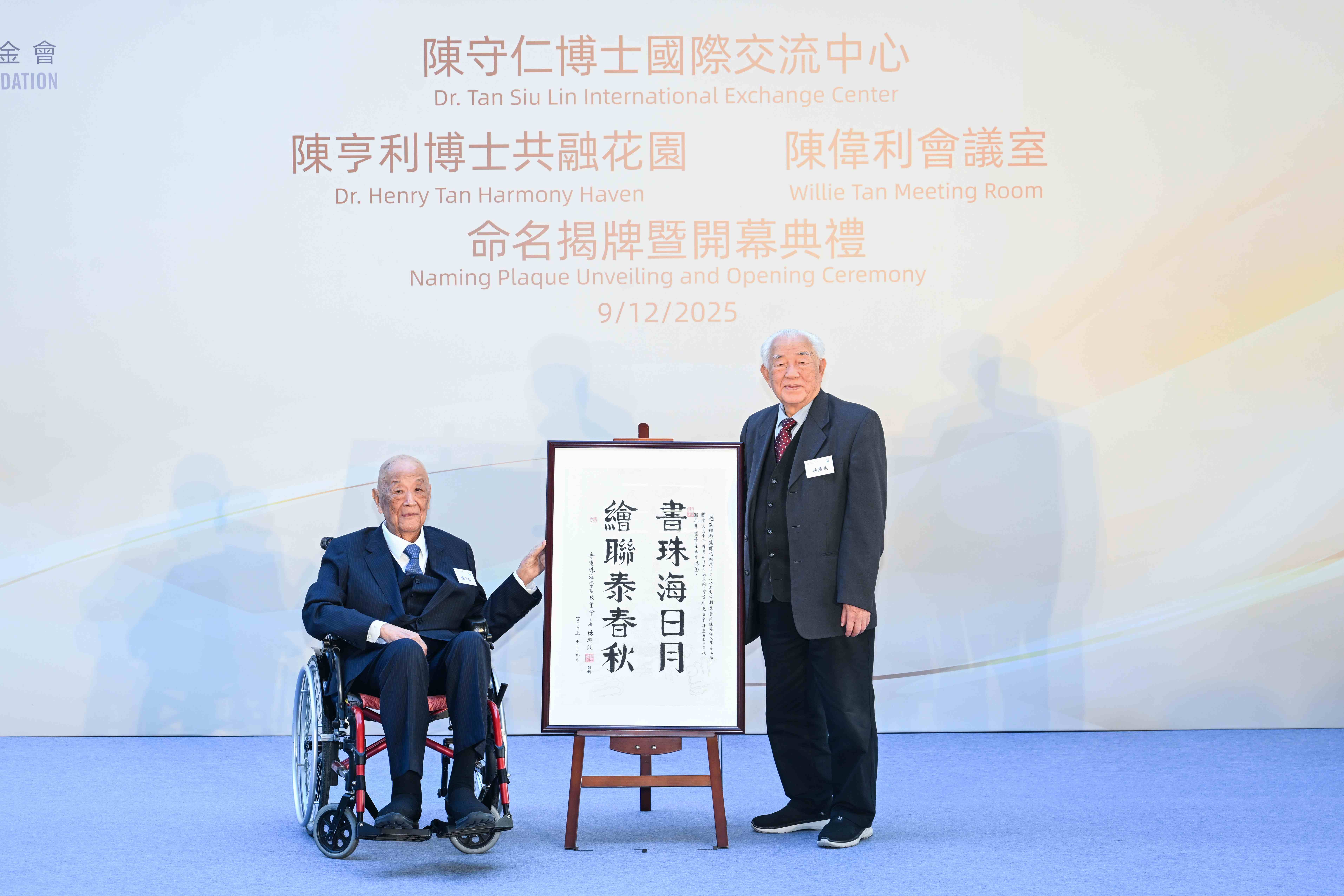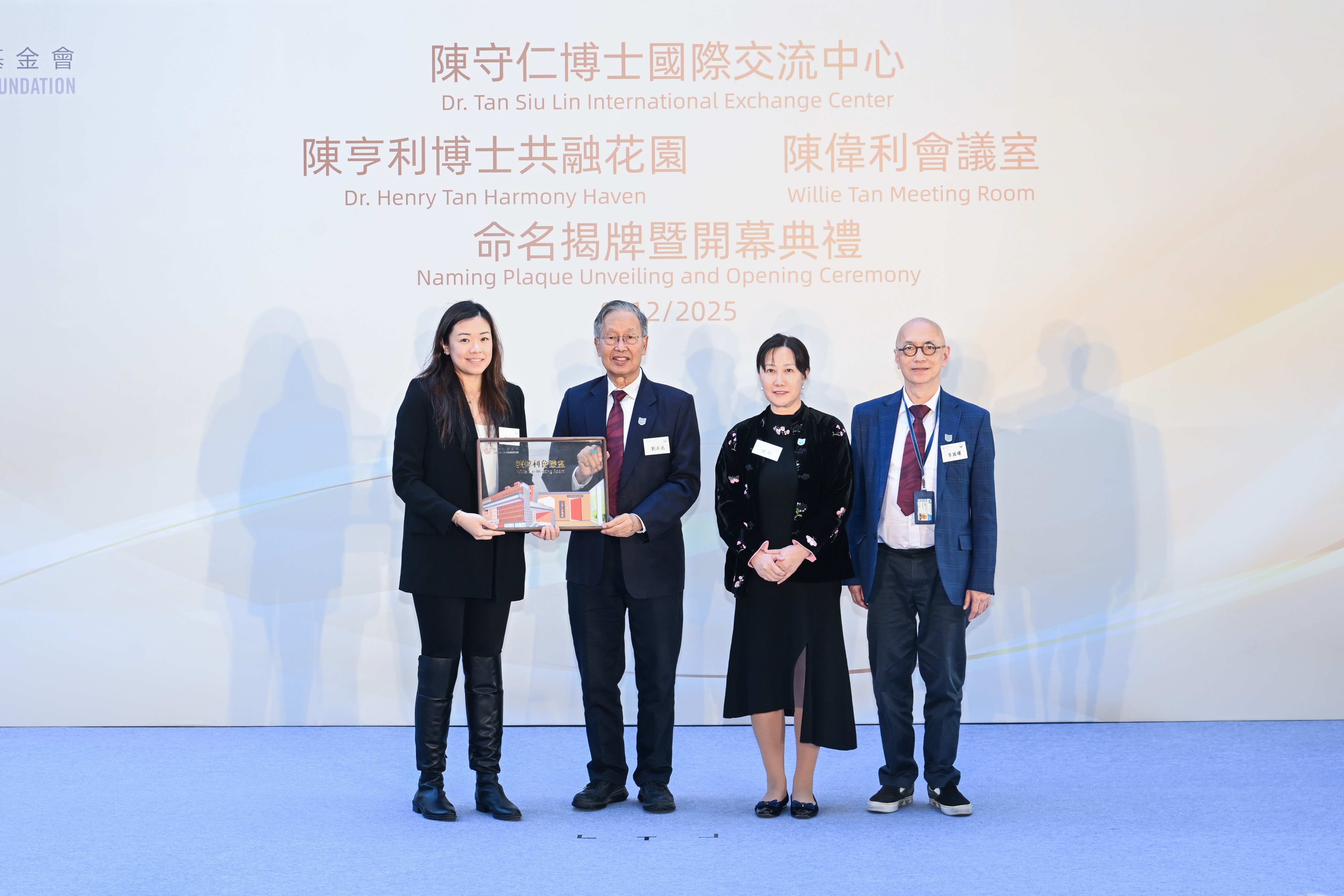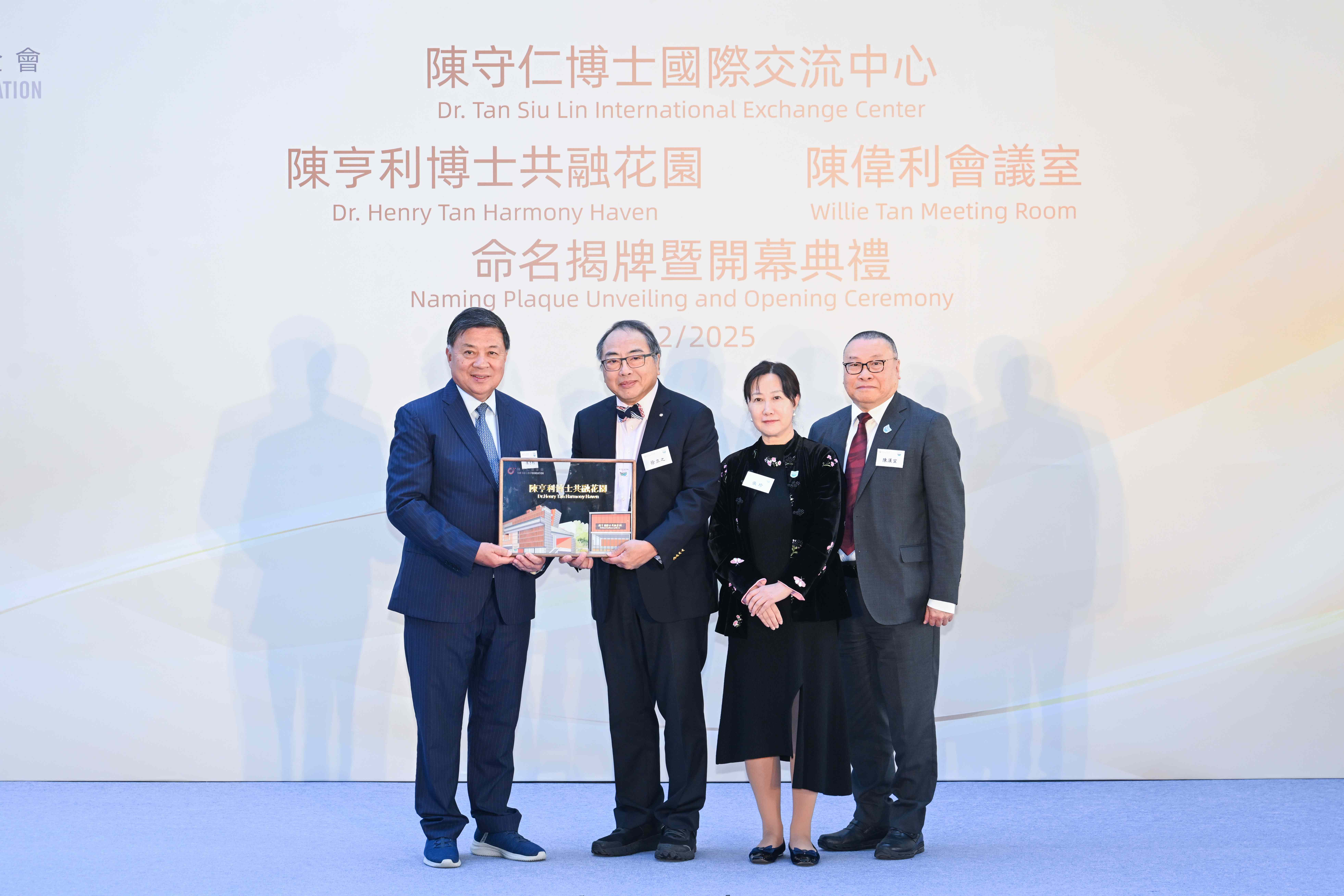2025年12月9日, “陈守仁博士国际交流中心”“陈亨利博士共融花园”及“陈伟利会议室”命名揭牌暨开幕典礼于香港珠海学院举行。陈守仁基金会主席陈守仁博士、副主席陈亨利博士、陈赵满菊总监、陈祖恒理事、陈诗婷执行总监、斯凯奇中国香港陈昭明总经理、联泰集团主席及首席执行官办公室执行副总裁蔡淑仁女士,与香港珠海学院校董会主席林广兆先生、校董会副主席林树哲先生、校董及校务委员会主席徐立之教授、校董刘正光博士、署理校长张珍女士等出席并主礼。