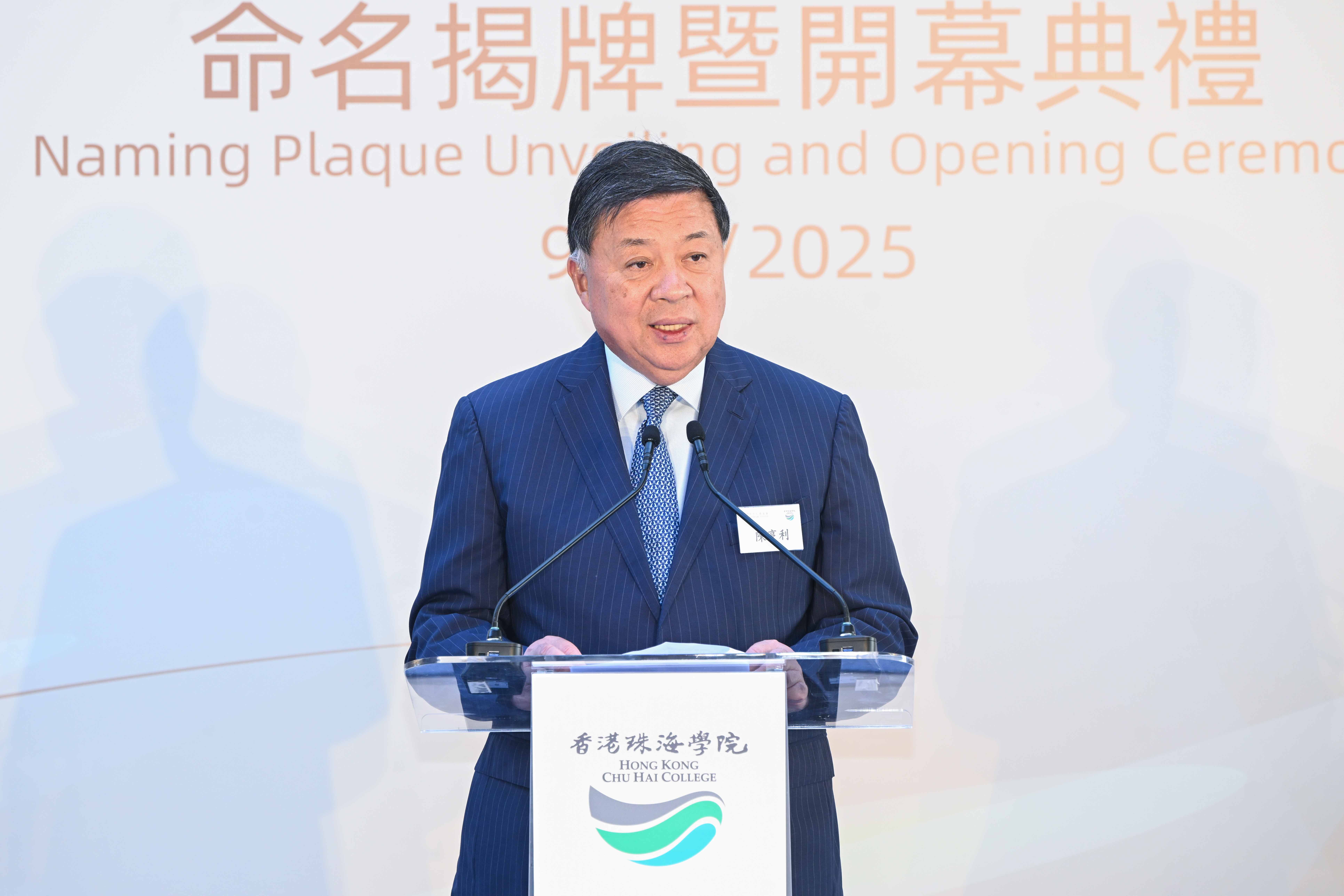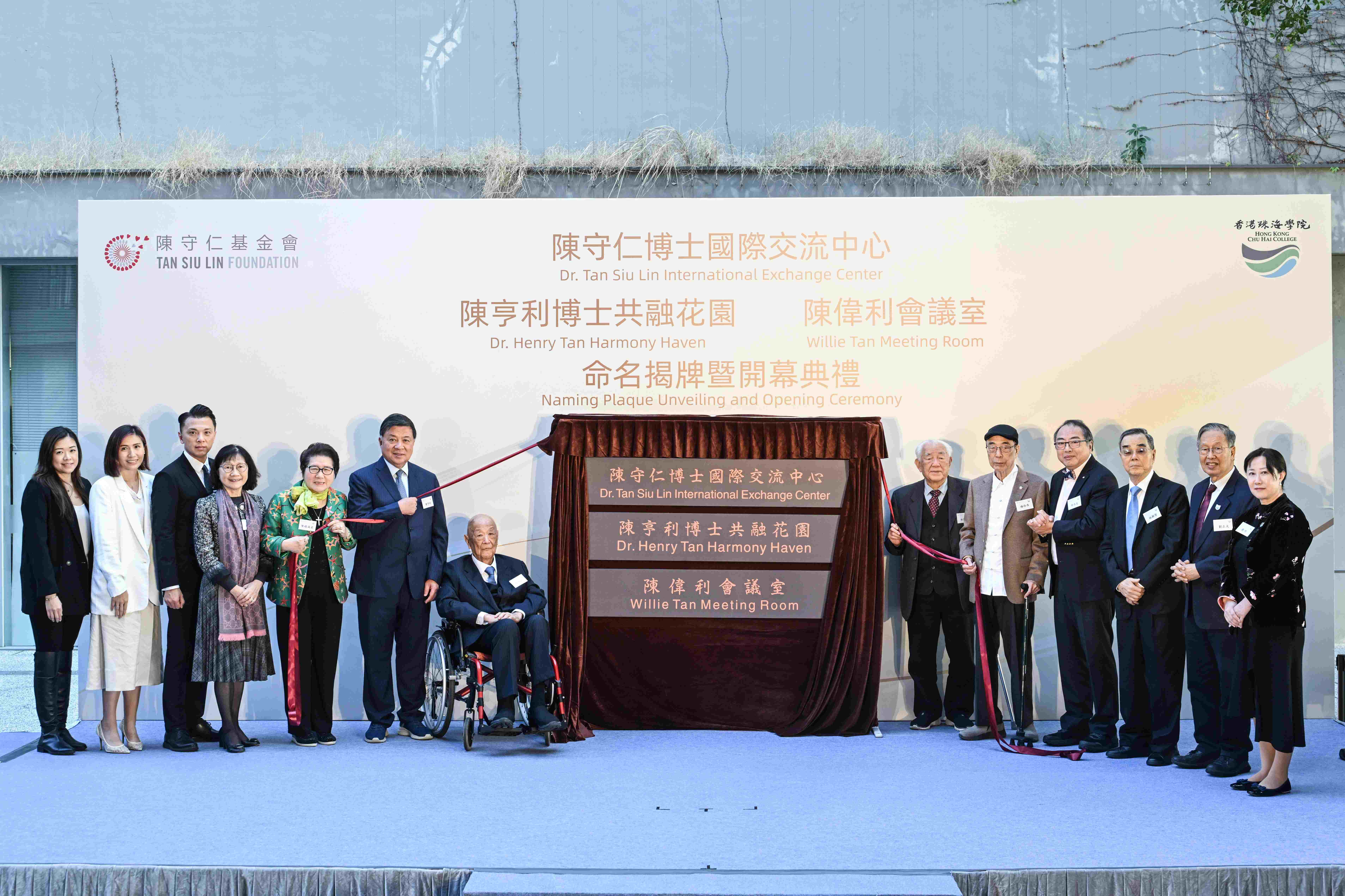 在命名揭牌仪式中,陈守仁基金会代表陈守仁主席、陈亨利副主席、陈赵满菊总监、陈祖恒理事、蔡淑仁主席、陈诗婷、陈昭明总经理,与香港珠海学院代表林广兆主席、林树哲副主席、徐立之校董、刘正光校董、杨孙西博士、张珍署理校长一起登台,共同启动仪式,现场掌声雷动。随后,主礼嘉宾分组移步至各设施现场,依次完成揭牌,每一处设施的启用,都标志着香港珠海学院在办学条件、国际交流与校园文化建设上迈出了坚实一步。
