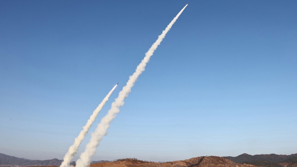 据朝中社28日报道,朝鲜导弹总局27日进行旨在验证运用新技术的更新型大口径火箭炮武器系统效力的试射。朝鲜劳动党总书记、国务委员长金正恩观摩了试射。