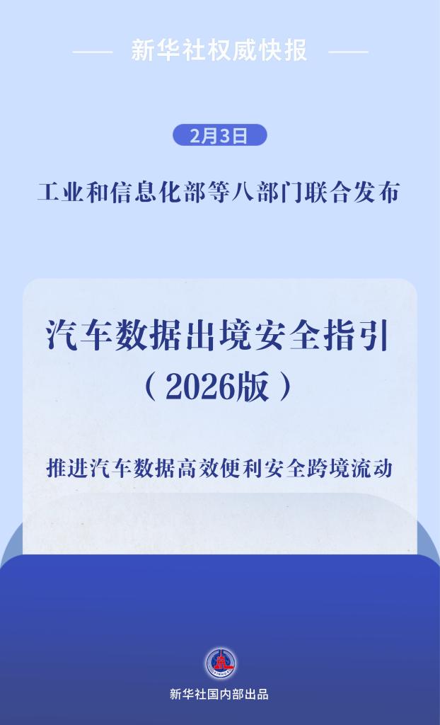 为推动建立高效便利安全的汽车数据跨境流动机制,提升汽车数据出境便利化水平,2月3日,工业和信息化部等八部门联合发布《汽车数据出境安全指引(2026版)》。