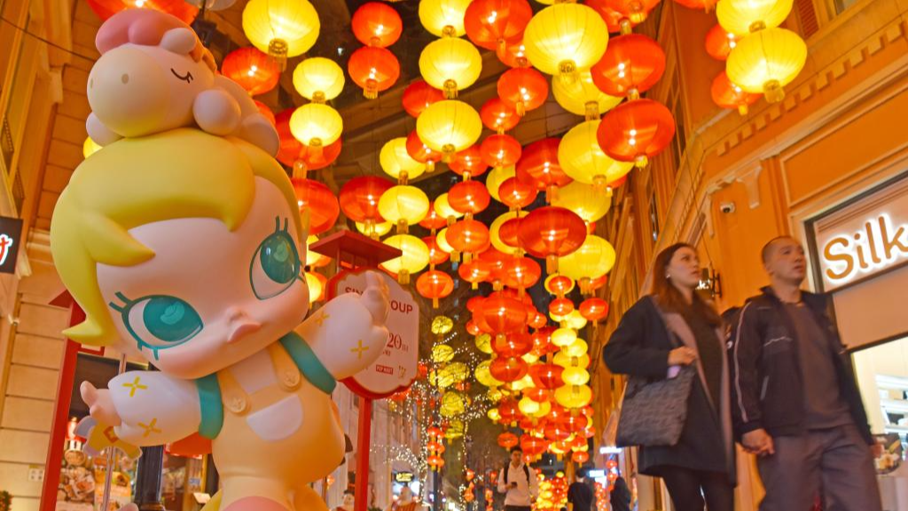 春节临近,香港利东街挂满大红灯笼,一派喜庆气氛。