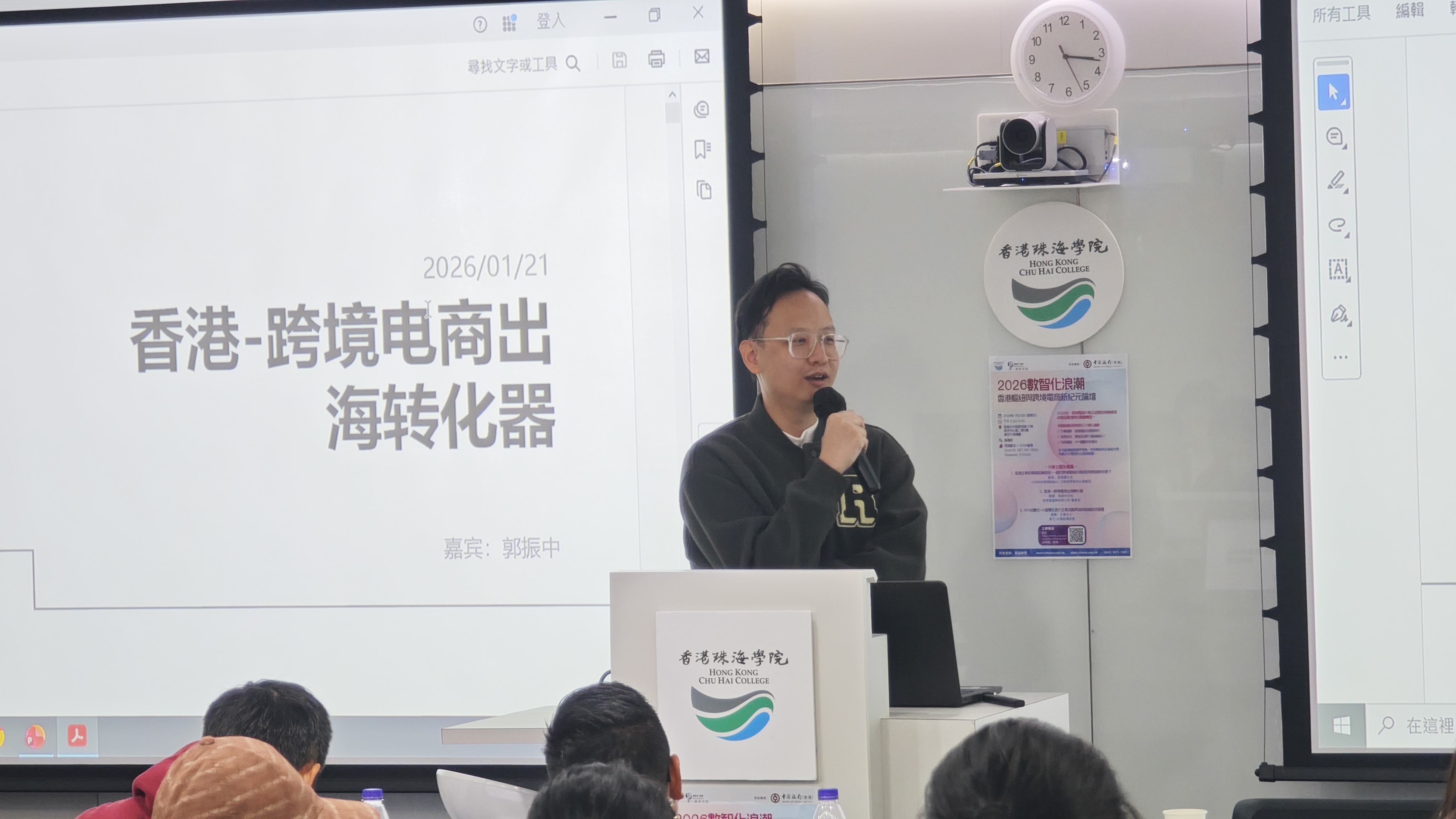 2026年1月23日下午,由香港珠海学院黄廷方·信和一带一路研究院主办的“2026数智化浪潮:香港枢纽与跨境电商新纪元论坛”在香港尖沙咀南洋中心黄廷方演讲厅举行。本次论坛由中国银行(香港)赞助,香港珠海学院黄廷方·信和一带一路研究院主办。论坛开始,黄廷方·信和一带一路研究院院长陈文鸿教授强调香港在跨境电商中发挥重要作用,期待行业专家抛砖引玉。论坛邀请三位行业专家,共同探讨香港在数字贸易时代的发展路径与创新机遇。