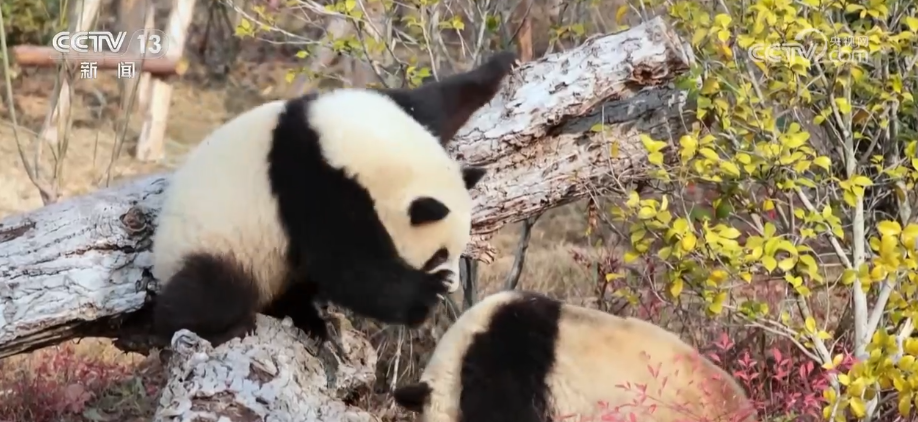 趁着妈妈“绩丽”睡觉晒背这个当口,熊猫宝宝一转眼就爬上了树。