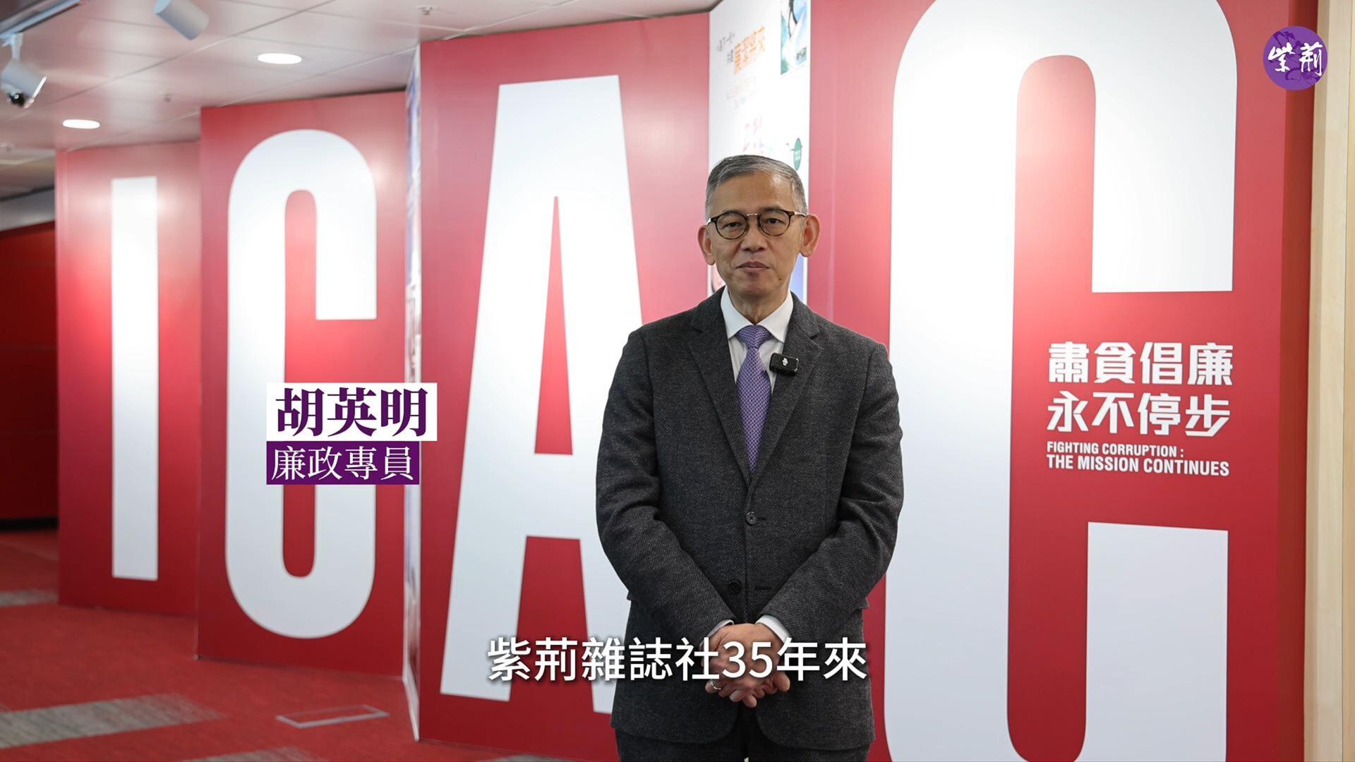 在紫荆杂志社成立35年之际,廉政专员胡英明为杂志社送上祝福。他表示,紫荆杂志社35年来一直弘扬清风正气,传播廉洁理念,巩固社会诚信。希望紫荆杂志社继续为营造香港的清风正气的良好环境贡献力量。祝贺紫荆杂志社35周年生日快乐,再创辉煌!