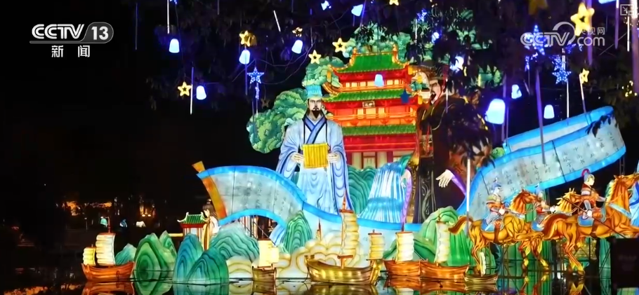成都武侯祠的三国主题创意集市,汇聚巴蜀文化特色。“策马三国,遇见成都”,武侯祠成都大庙会点亮了“灯映三国福满蓉城”的盛景。“君臣之交”“三国名驹”“锦囊妙计”等灯组,或气势恢宏,或栩栩如生,或萌趣可爱,让传统文化潮趣出圈。