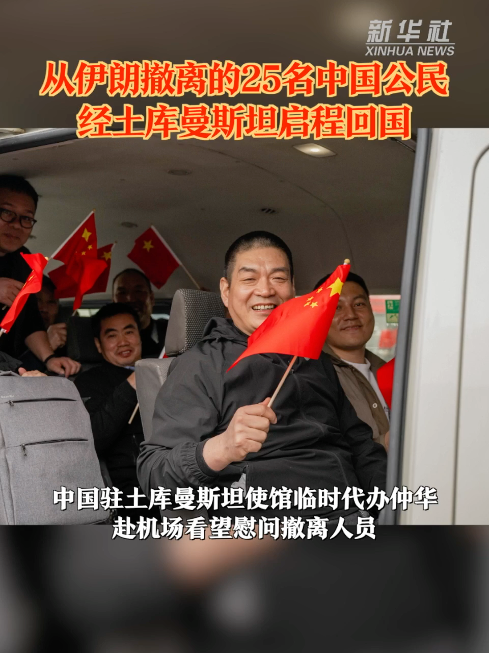 阿什哈巴德消息:首批3日从伊朗撤至土库曼斯坦境内的25名中国公民,4日凌晨已全部登机启程回国。