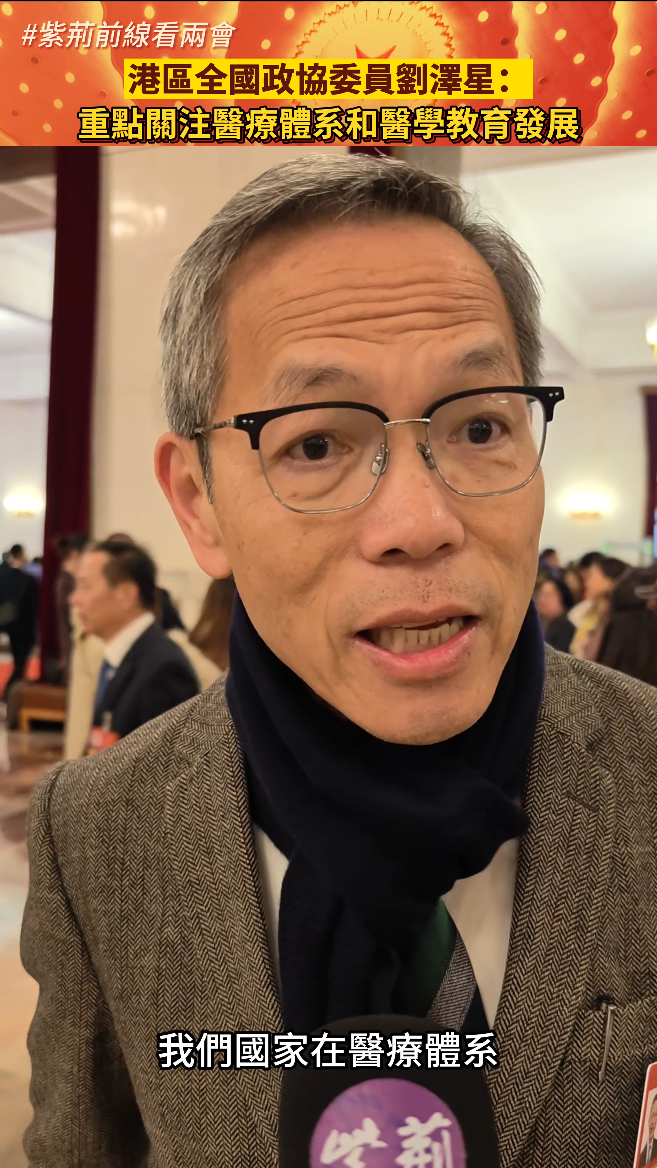 港区全国政协委员刘泽星接受紫荆杂志记者采访时表示,本次两会重点关注国家在医疗体系和医学教育方面的发展。