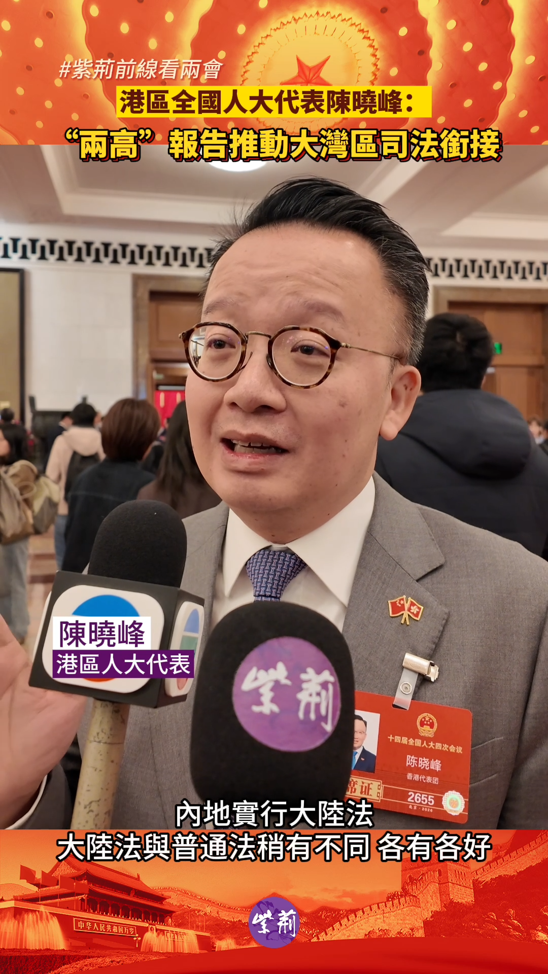 港区全国人大代表陈晓峰在接受紫荆杂志采访时表示,虽然内地与香港司法制度不同,但“两高”在司法衔接上做得十分好,未来将继续推动粤港澳大湾区司法规则衔接。