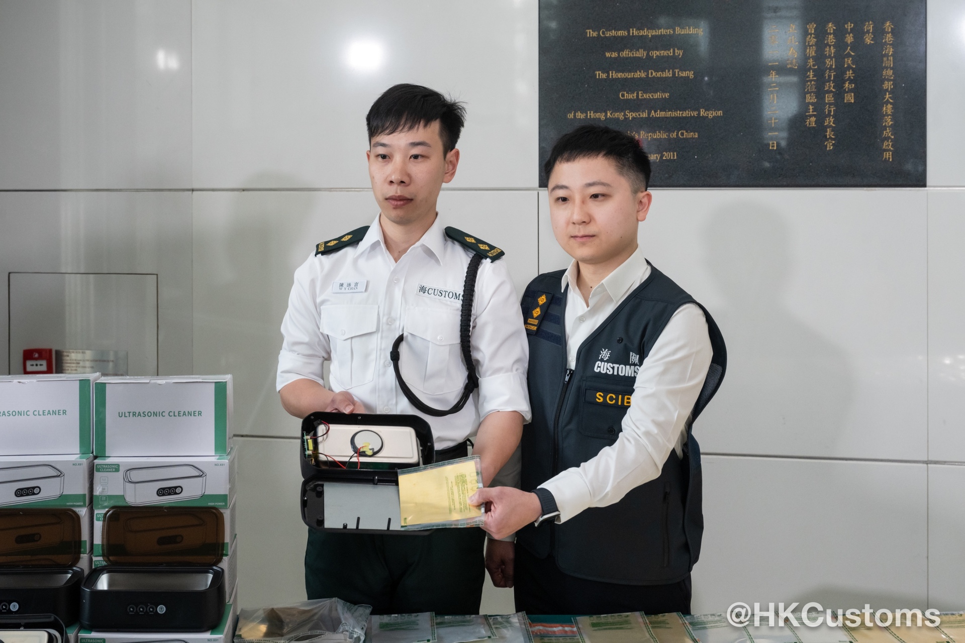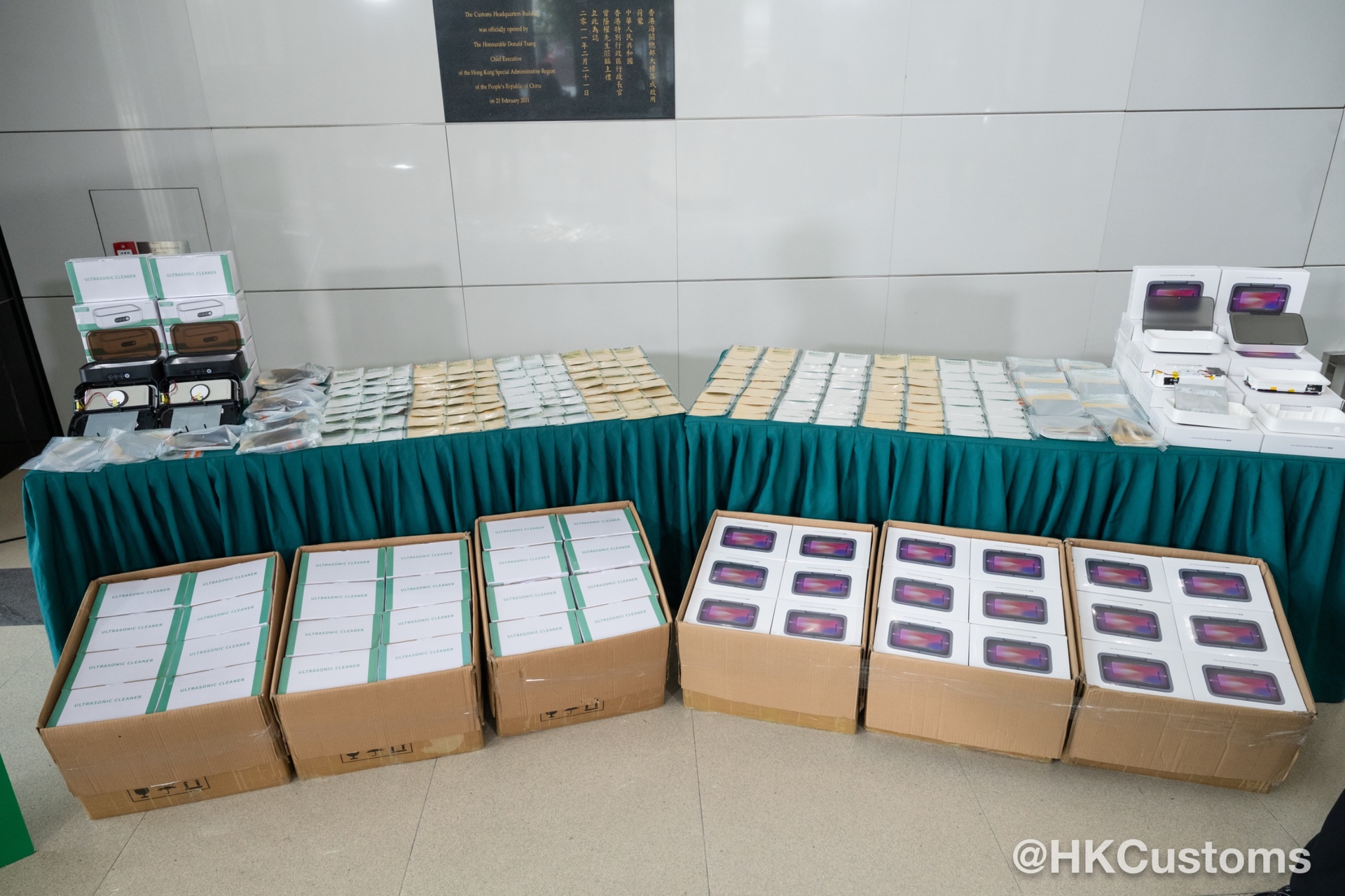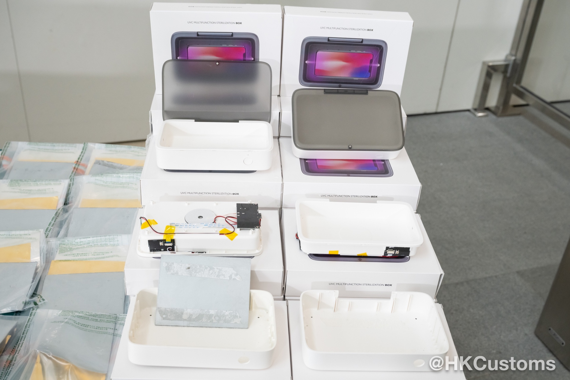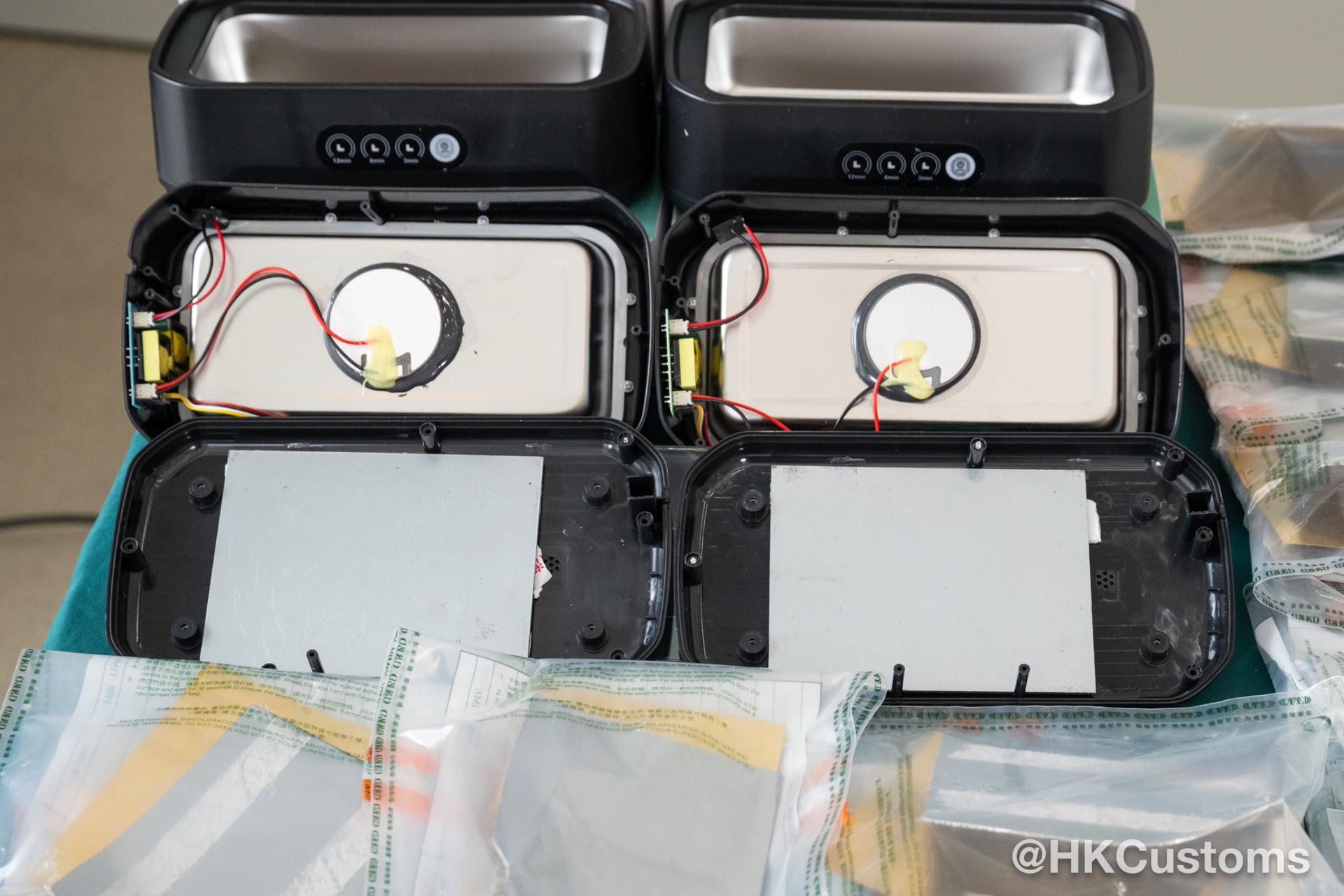 根据风险评估,香港海关当日于香港国际机场海关验货场检查两个准备出口往日本,报称载有多功能清洗机及紫外光清洗机的空运货物。经查验后,香港海关人员在该两个货物中逾四千件清洗机的内部检获该批怀疑黄金薄片及怀疑白银薄片。