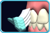 ![]() | 内侧面:然后刷牙齿的内侧面,同样把牙刷斜放在牙龈边缘,以两至三颗牙齿为一组,用适中力度来回移动牙刷。