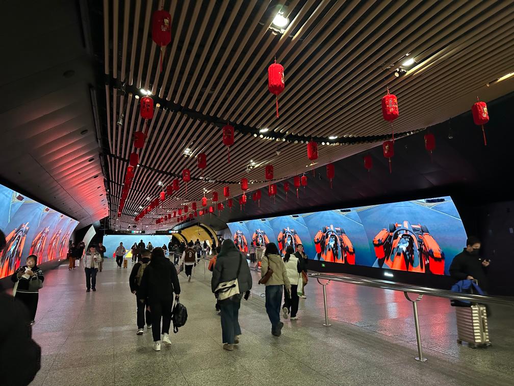 几块巨大的屏幕上F1资讯滚动播放