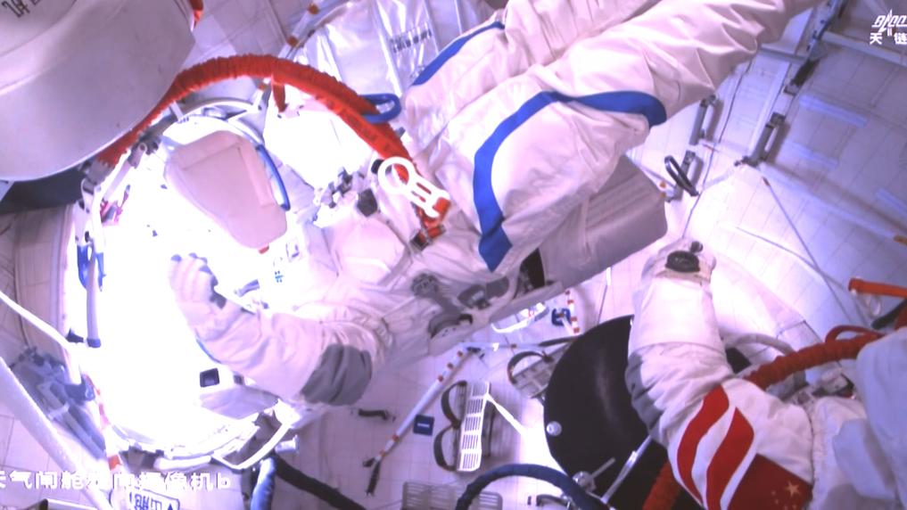 3月16日19时35分,经过7小时的出舱活动,神舟二十一号乘组航天员张陆、武飞、张洪章密切协同,在空间站机械臂和地面科研人员的配合支持下,圆满完成空间碎片防护装置安装等任务。出舱航天员张陆、武飞已安全返回问天实验舱,出舱活动取得圆满成功。