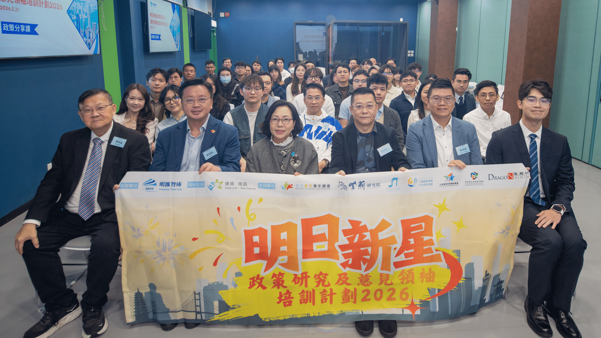 明汇智库日前(3 月 21 日)在九龙深水埗南昌社区中心举办“明日新星政策研究及意见领袖培训计划 2026”政策分享课暨全国两会精神分享会。民政及青年事务局局长麦美娟,全国人大代表凌友诗,全国政协委员凌俊杰。全国政协委员、明汇智库主席曾智明,明汇智库荣誉总监曾渊沧等出席主礼。
