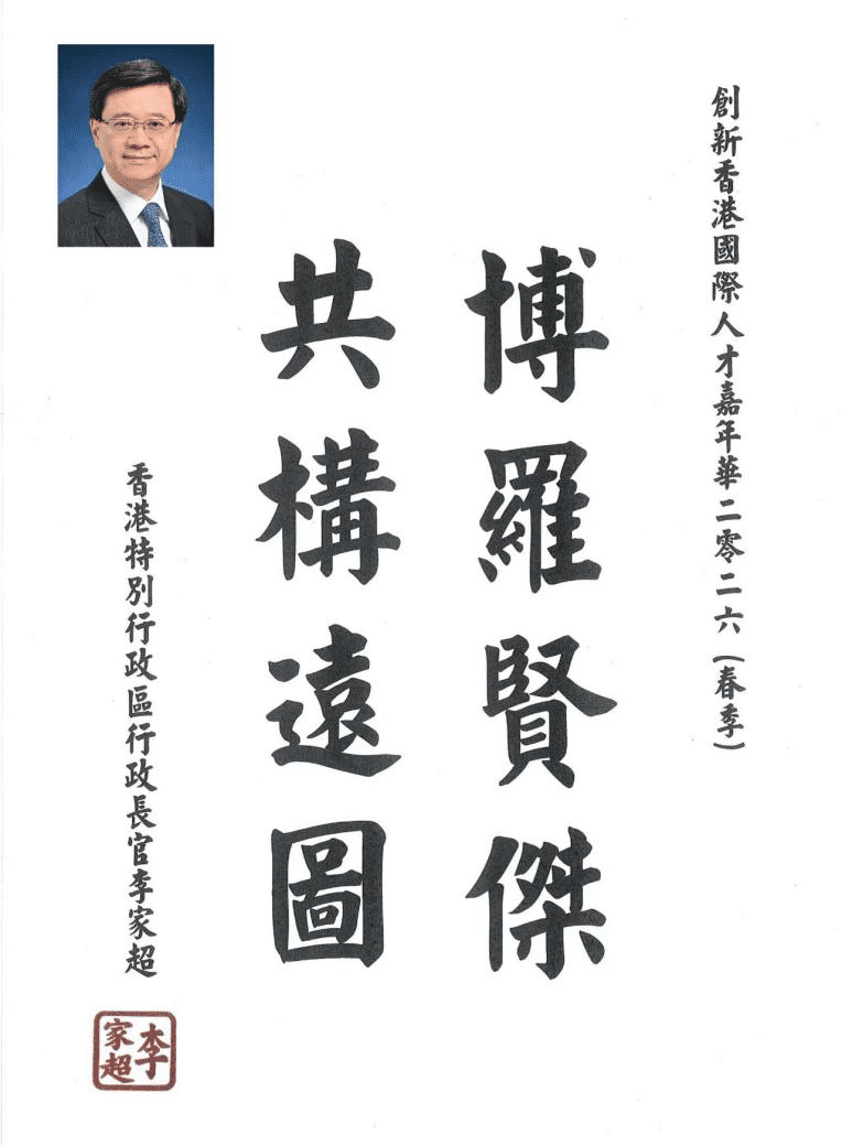 活动获香港特别行政区政府高度支持,香港特首李家超为本次嘉年华题词“博罗贤杰,共构远图”,香港特别行政区政府劳工及福利局局长孙玉菡先生,JP,民建联副主席、港区全国人大代表召集人、香港立法会议员陈勇先生,全国政协委员、香港立法会议员、香港立法会工商及创新科技委员会主席吴杰庄博士MH,JP等多位政府要员及社会贤达将作为主礼嘉宾出席活动,共同见证这场国际人才与科技创新盛会。