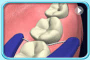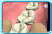 ![]() | 2.由牙龈沟最深的地方开始,轻轻上下拉动牙线,清洁该牙齿邻面。 |