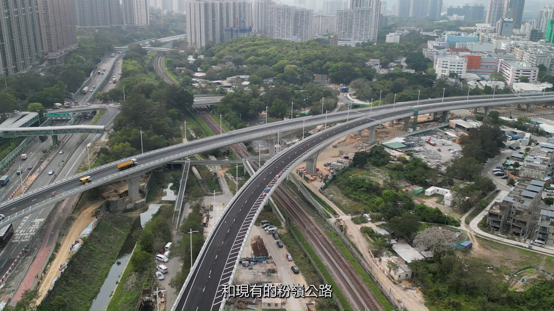 特区政府全力提速提效发展北部都会区及相关基建,其中粉岭绕道(东段)全长约4公里,是北部都会区发展中首个落成的大型运输基建项目。粉岭绕道(东段)的主体工程由展开至完成历时6年,当中一大突破,是土木工程拓展署的工程团队借鉴内地桥梁建造技术后,在全港首次采用“桥梁转体施工技术”,以两个晚上完成转体跨越港铁东铁线的两段行车桥的建造工程。