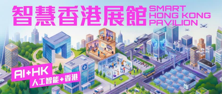 展馆以“人工智能+香港”为主题,聚焦人工智能(AI)在香港不同领域的创新应用,设置“AI+公共服务”、“AI+医疗创新”、“AI+日常体验”、“AI+机械人创新”、“AI+出行革新”、“AI+安全保障”、“AI+基建发展”和“AI+低空经济”八大展区,展出过百项创科成果,包括来自20多个政府部门和公营机构的创新方案,亦有本地创科界和学生于“香港资讯及通讯科技奖”、“‘创客中国’国际中小企业创新创业大赛—香港分站赛”和“开放数据应用比赛”的得奖作品。