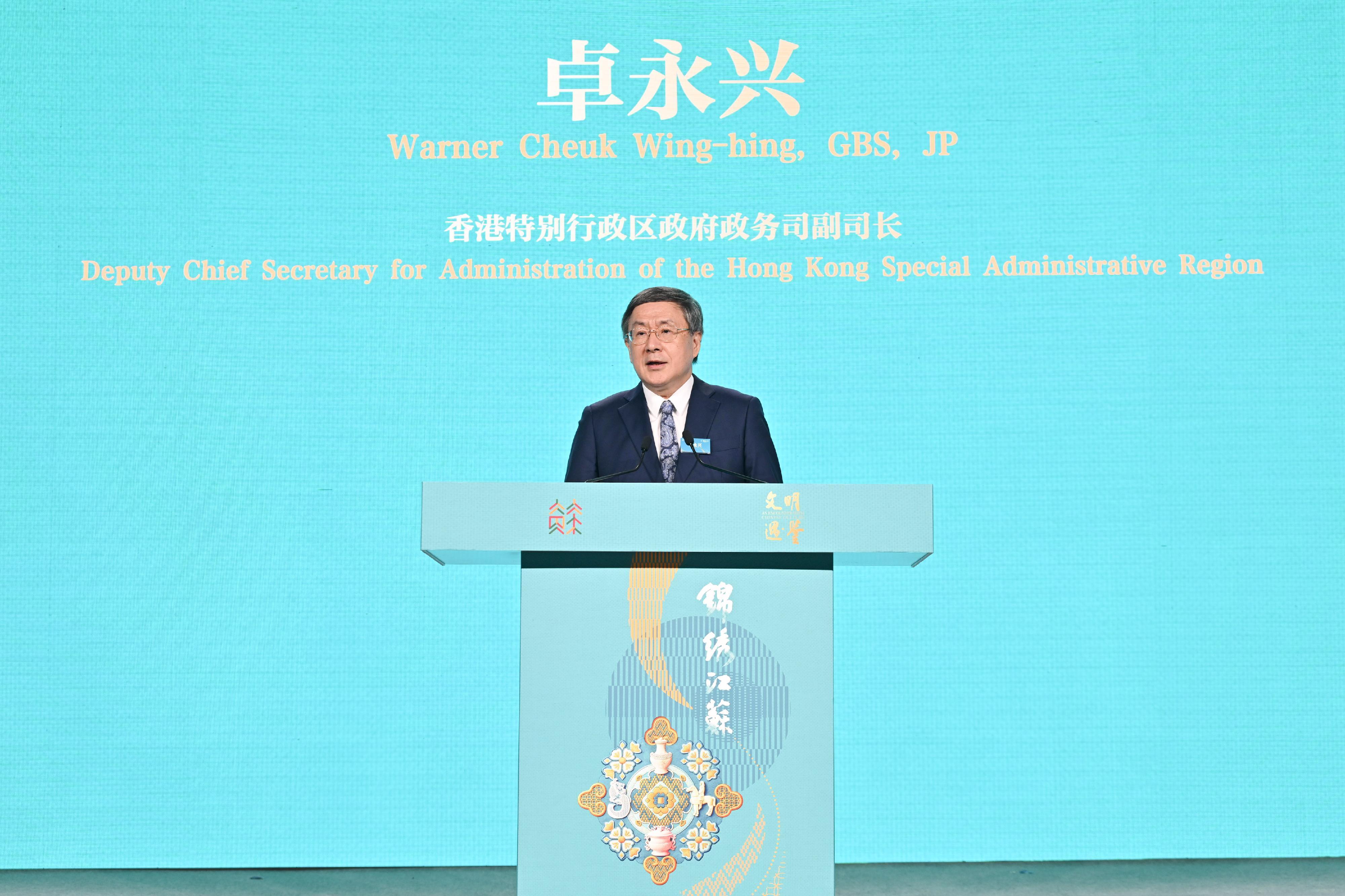江苏省委常委、省委宣传部部长、省对外文化交流协会会长徐缨,香港特别行政区政府政务司副司长卓永兴,全国政协常委、香港江苏社团总会创会会长唐英年出席活动并致辞。苏港两地约240位代表齐聚一堂,共话文化传承与产业创新。