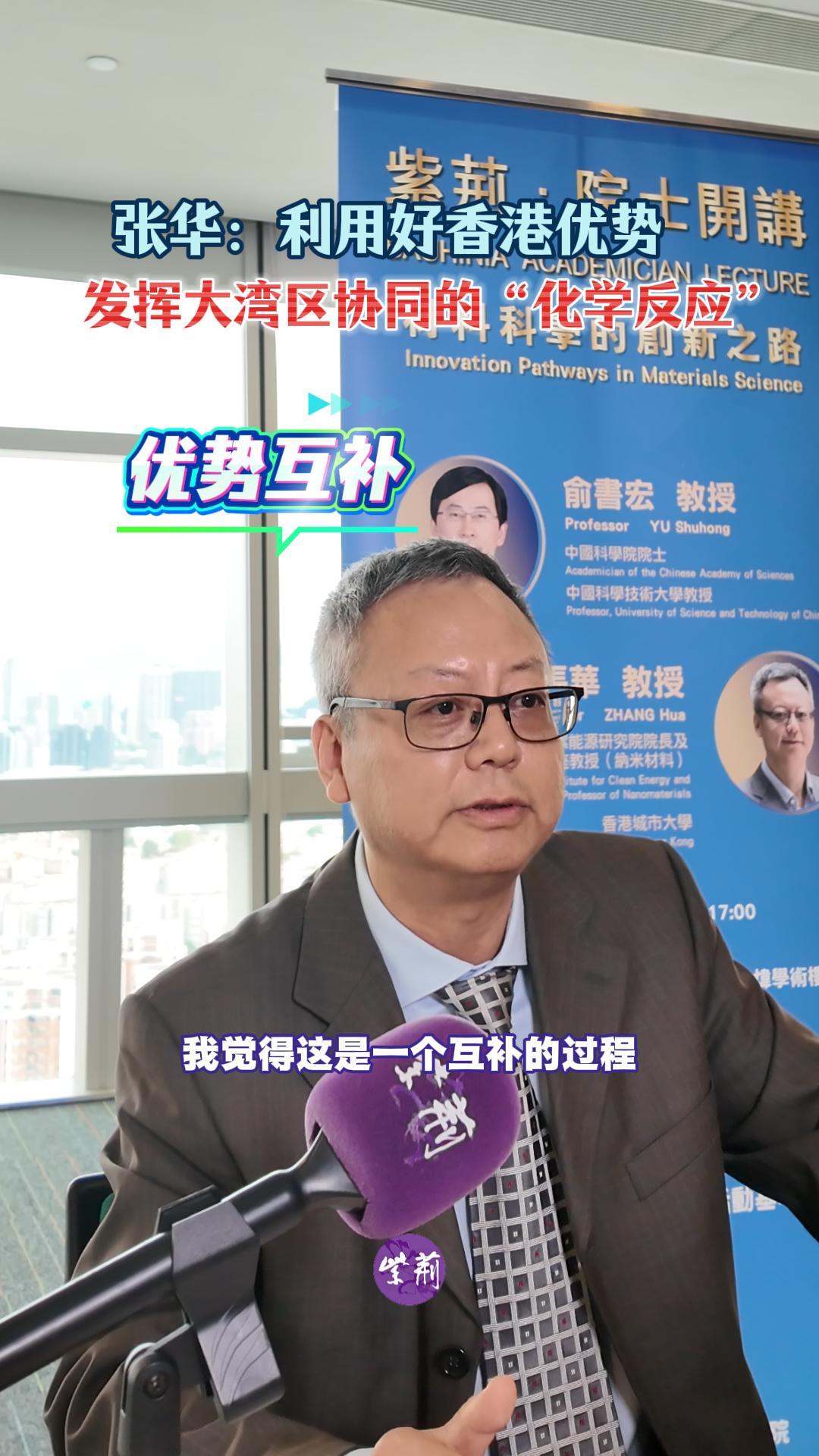 香港清洁能源研究院院长及胡晓明讲座教授(纳米材料)张华在“紫荆·院士开讲”活动中谈及大湾区协同发展前景。他表示,要利用好香港的优势,优势互补,发挥大湾区协同的“化学反应”,实现1+1大于2的效果。