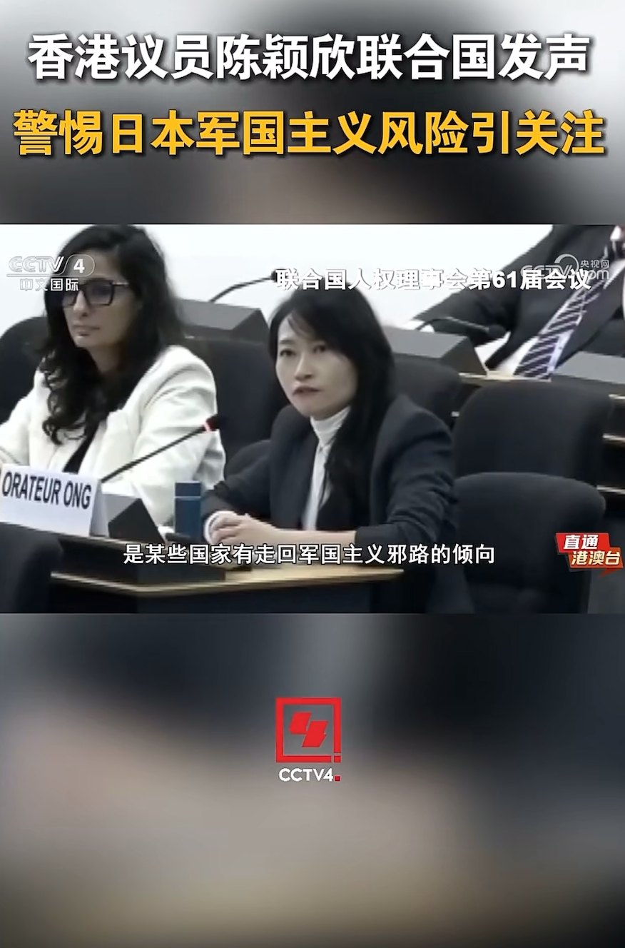 工联会副理事长、立法会议员陈颖欣于3月12日在瑞士日内瓦联合国人权理事会第61届常会发言时指出,要关注某些国家有走回军国主义邪路的倾向,中东战争本不应发声,呼吁各方应共同坚定立场,合力遏止战争威胁,改善全球安全治理,避免妇女和孩童无辜受害。