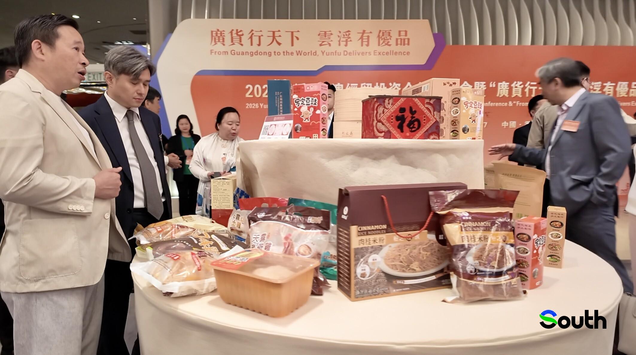会场内同步设置了丰富的主题展区。“两业协同展区”聚焦云浮市及各县(市、区)的投资环境。“广货行天下、云浮有优品”主会场展区分为五大板块,集中展示了云浮的特色优质农产品、绿色食品、智能制造、禅意休闲文旅资源以及名优楼盘等,吸引了众多港澳客商驻足洽谈。
